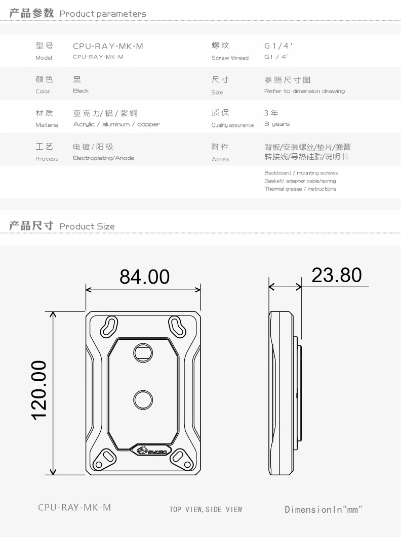 Bykski CPU-RAY-MK-M PC водяной Охлаждающий радиатор, кулер для проц...