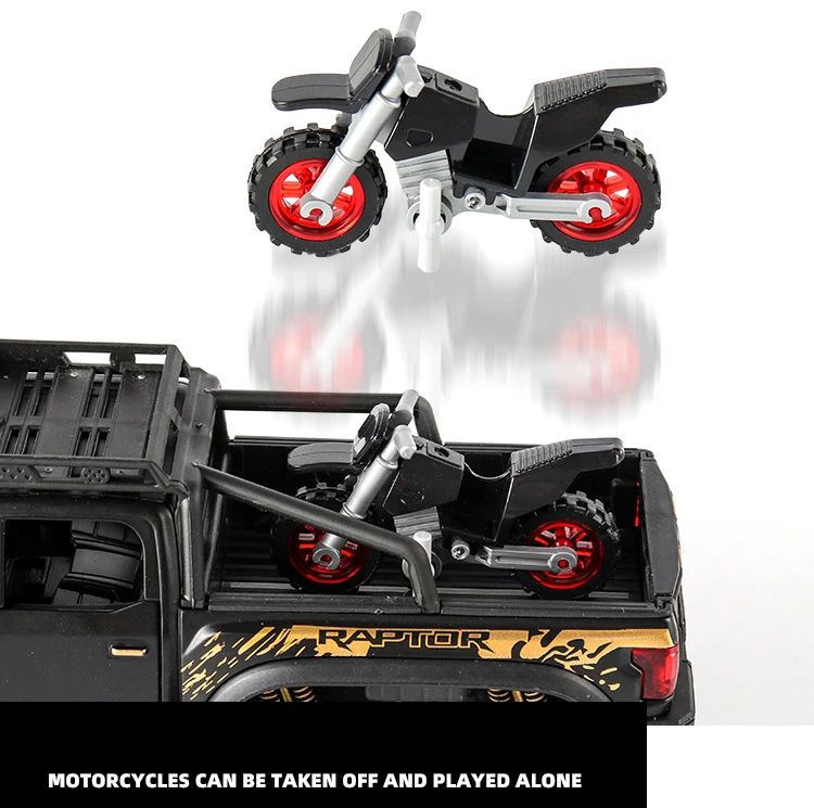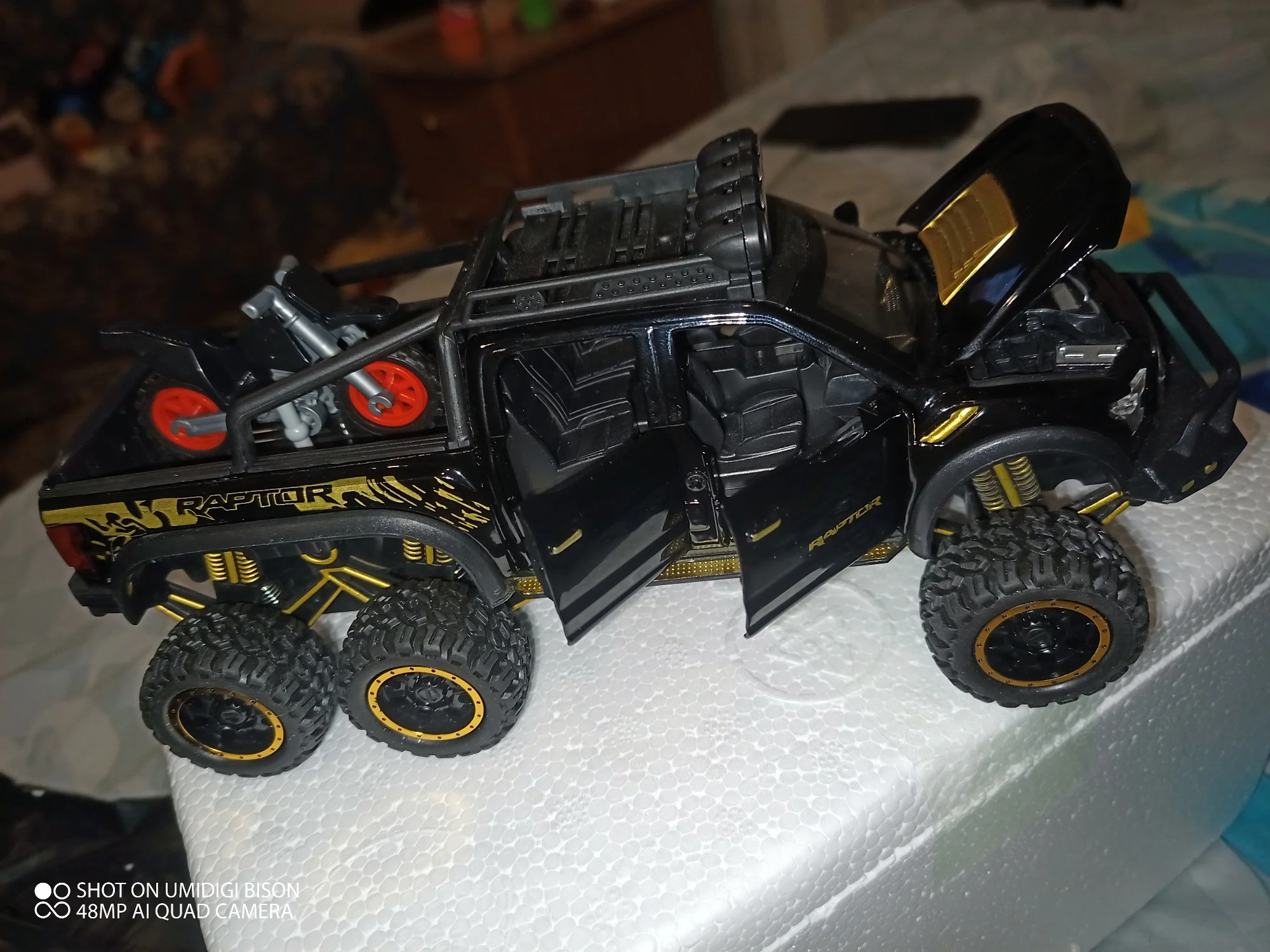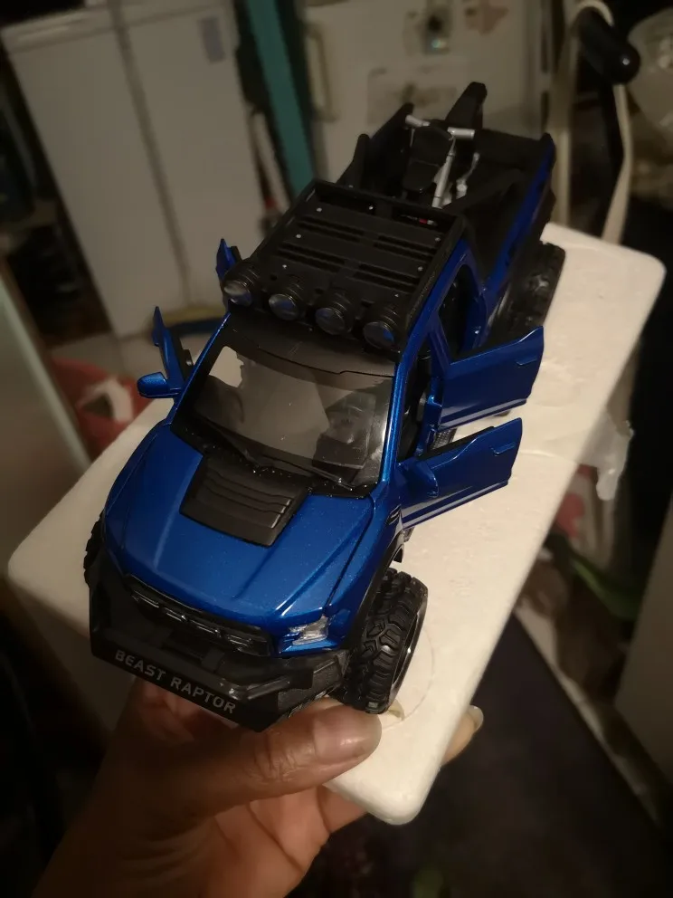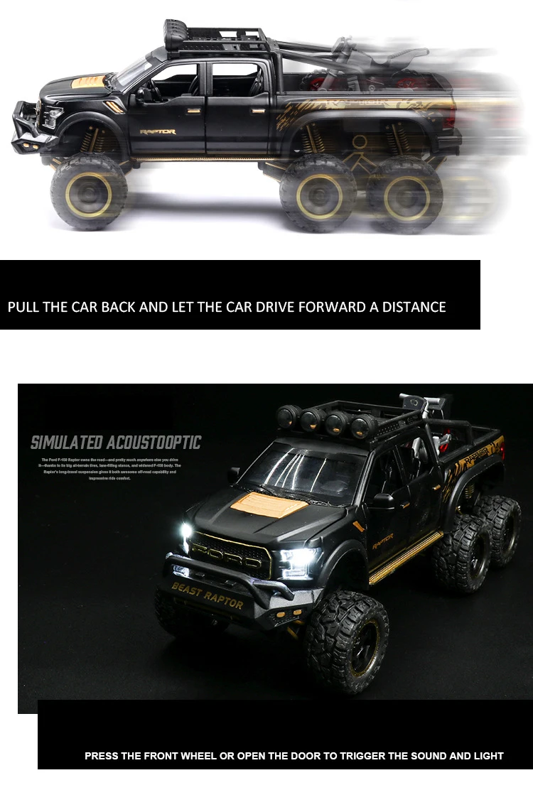 Модель автомобиля Ford Raptor F150 с большими колесами, литая модель автомобиля со звуком, подсветкой, игрушка для детей, подарок на Рождество, 1:28