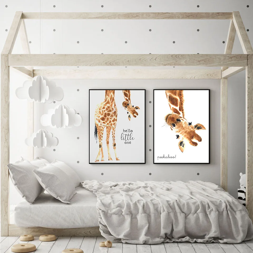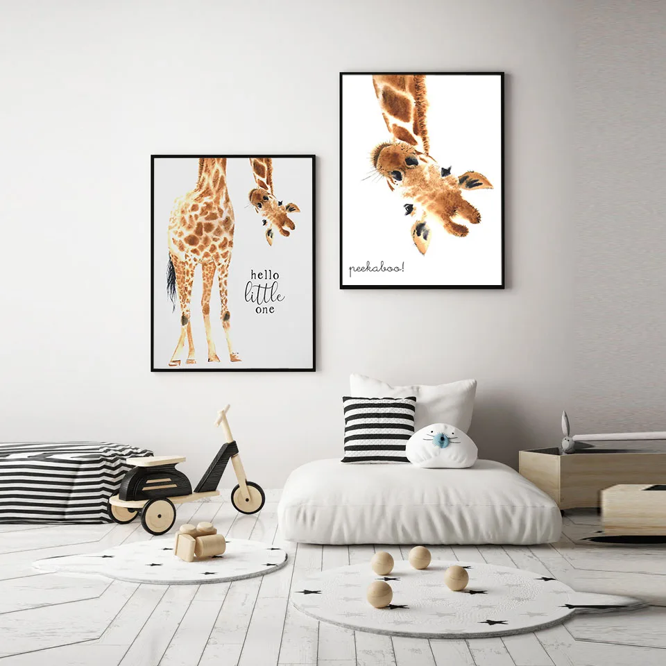 Холст с изображением жирафа, Детская фотография на стену, картина, новая детская картина на крестины, детский Декор в скандинавском стиле для детской спальни