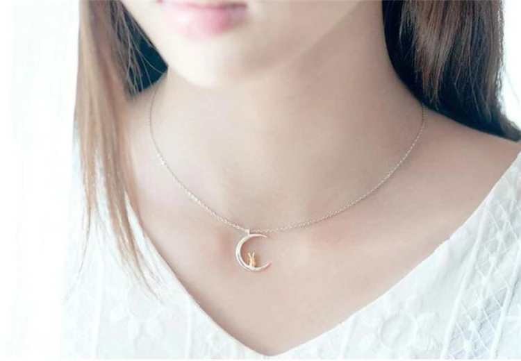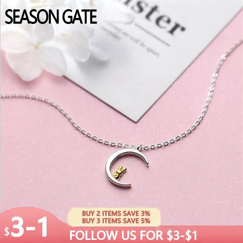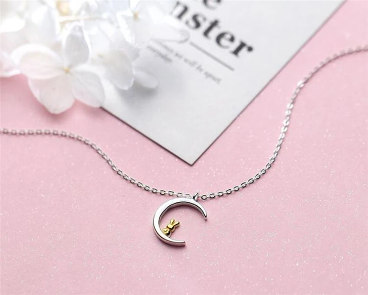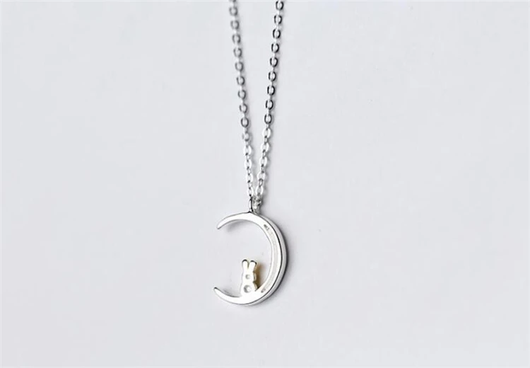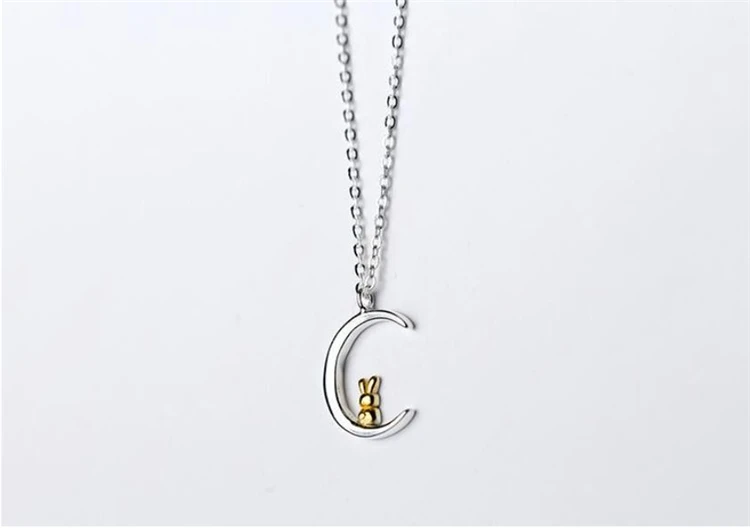 Ожерелье из настоящего серебра с подвеской в виде милой Луны и кролика, цепочка для женщин и девушек, подарки на день рождения, ювелирные изделия, женская бижутерия SN011