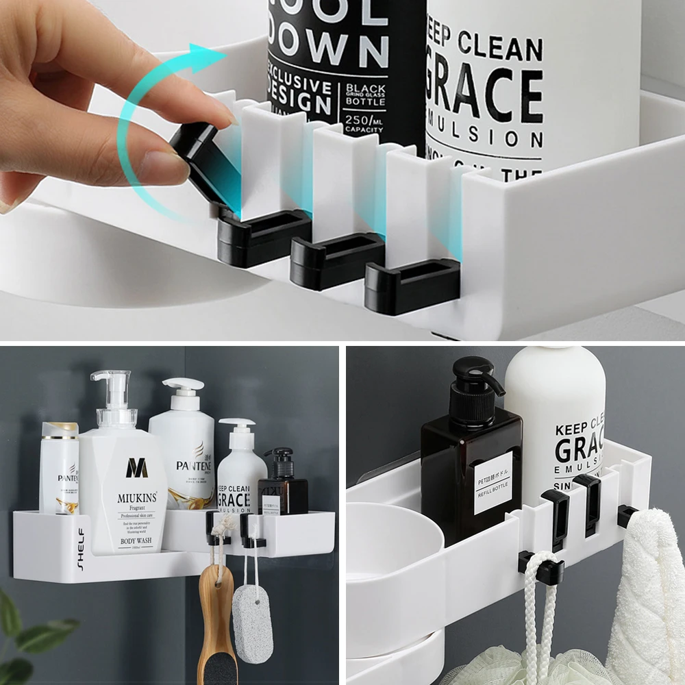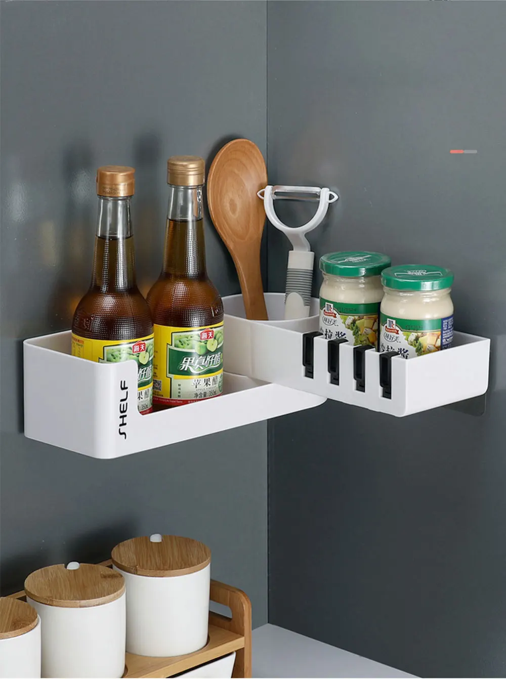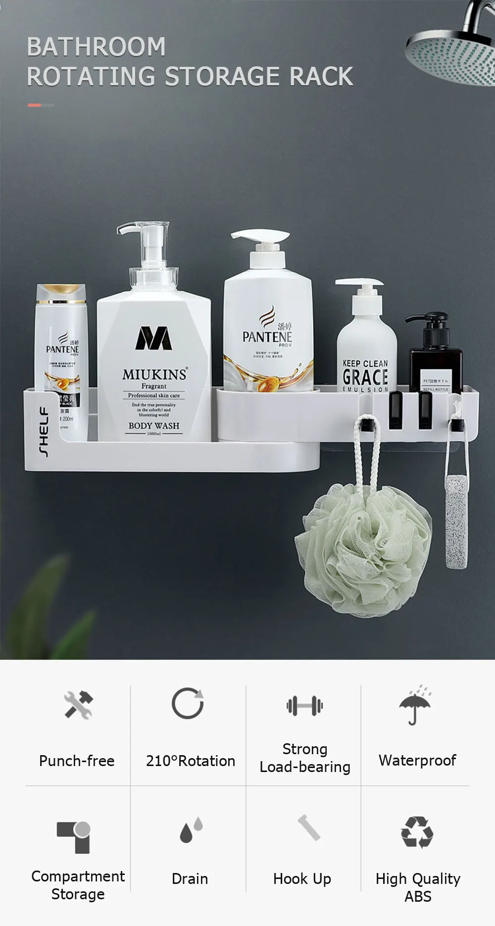 Ванная комната вращающийся стеллаж для хранения Кухня хранения угловые полки для ванной с крючки стены смонтированный органайзер для Ванная комната аксессуары