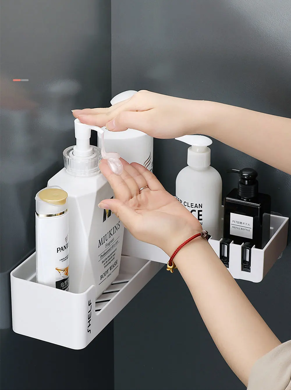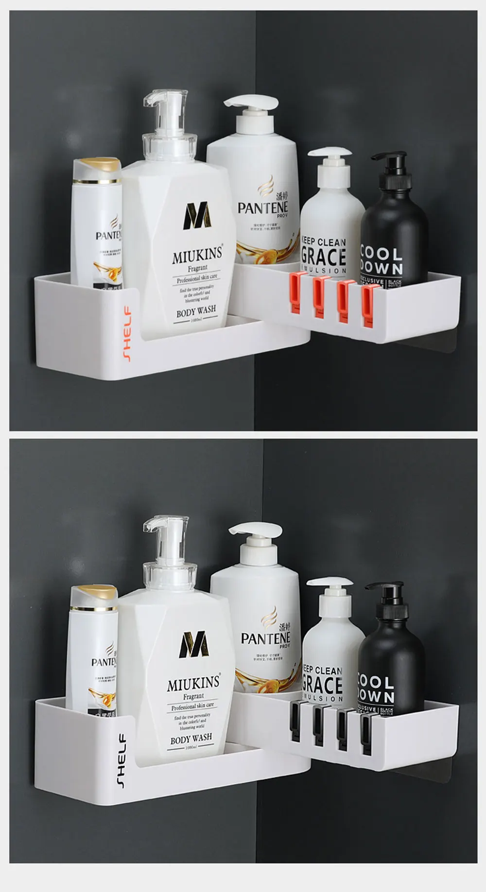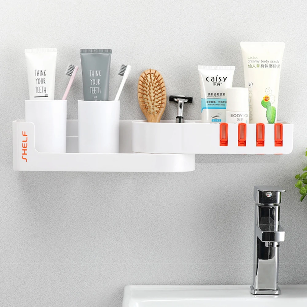 Ванная комната вращающийся стеллаж для хранения Кухня хранения угловые полки для ванной с крючки стены смонтированный органайзер для Ванная комната аксессуары