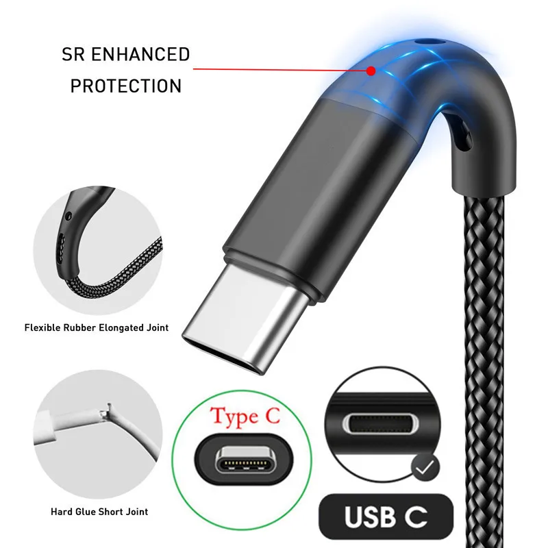 USB кабель типа C для Xiaomi Huawei P20 P30 Mate 30 40 Samsung A50 ...
