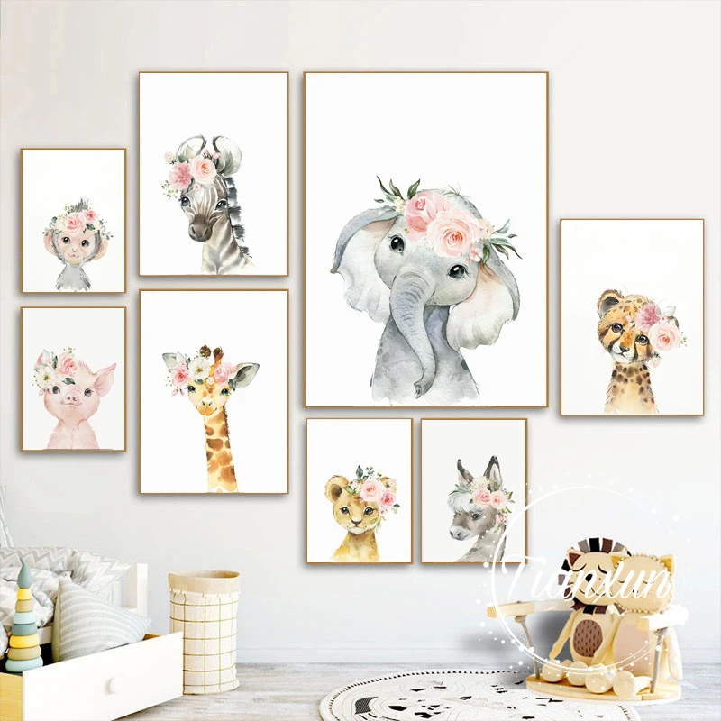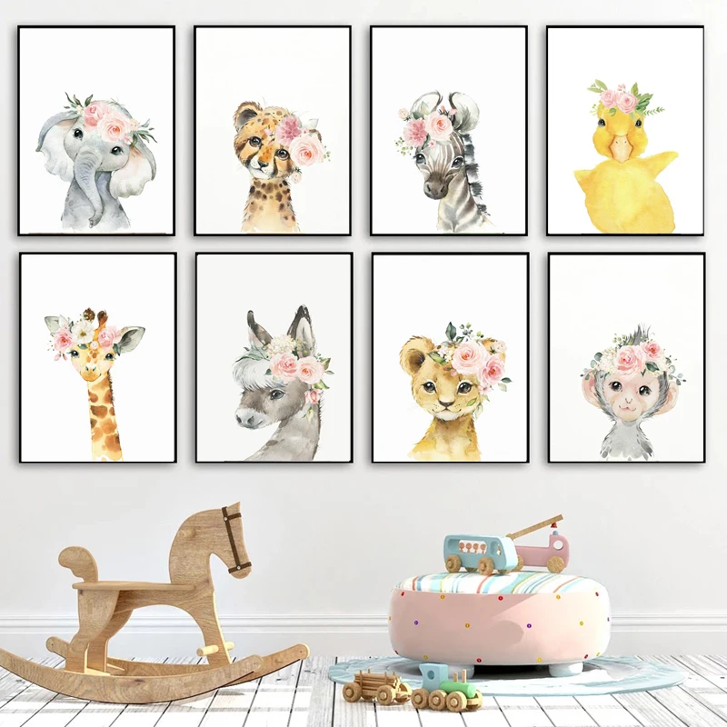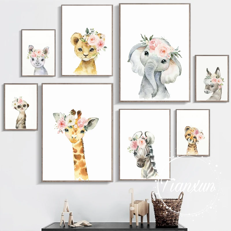 Картина на холсте в скандинавском стиле с рисунком животных, милая Зебра, жираф, Лев, слон, постер для детской комнаты, настенное украшение для детской комнаты