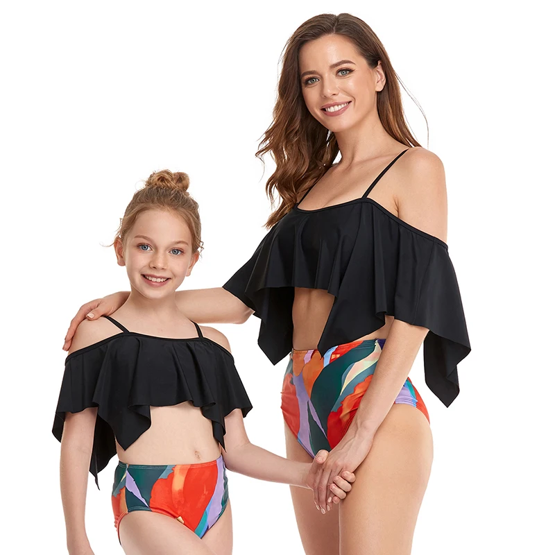 Купальник из двух частей для родителей и детей, купальные костюмы для девочек, женский купальник , детское Бразильское бикини , комплект бикини с завышенной талией