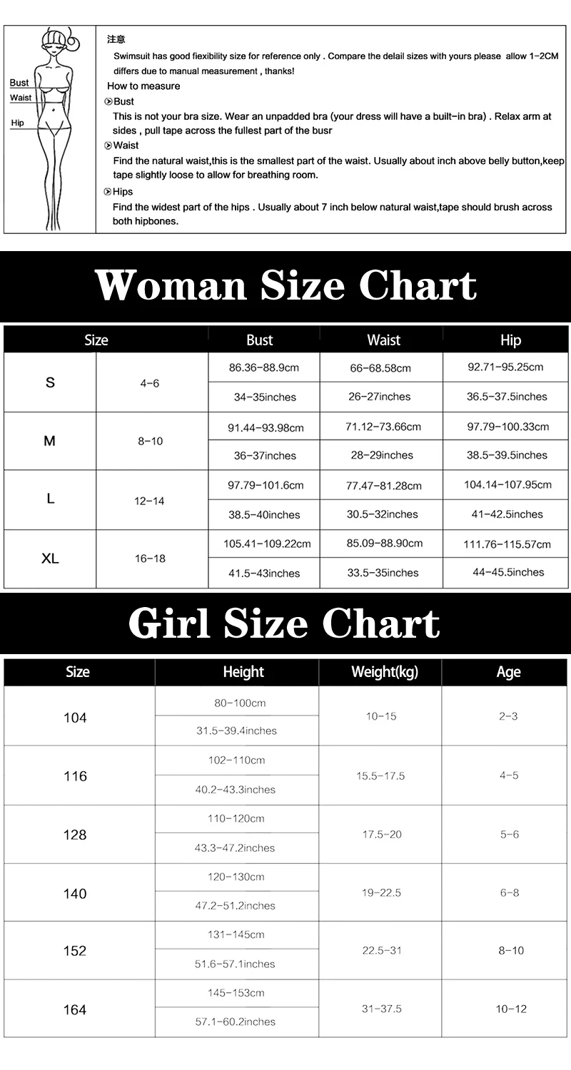 Подходит Пол: женщинРисунок: принтНазвание ткани: нейлонСостав ткани: нейлонСодержание ткани: 82%Название подкладки: нейлонСостав подкладки: нейлонСодержание подкладки: 82%Цвет: черный/карамельныйТаблица размеров для женщин(Единица измерения: 1 дюйм = 2,54 см, 1 см = 0,39 дюйма)Размеры: S, обхват груди: 86,36-88,9 см, большие размеры 34-35 дюймов; Эластичная резинка на талии: 66-68,58 см, 26-27 дюймов; Обхват бедер: 92,71-95,25 см, 36,5-37,5 дюймов.Размер: M, обхват груди: 91,44-93,98 см, 36-37 дюймов; Обхват талии: 71,12-73,66 см, 28-29 дюймов; Обхват бедер: 97,79-100,33 см, 38,5-39,5 дюйма.Размеры: L, обхват груди: 97,79-101,6 см, 38,5-40 дюймов; Эластичная резинка на талии: 77,47-81,28 см, 30,5-32 дюймов; Обхват бедер: 104,14-107,95 см, 41-42,5 дюймов.Размер: XL, обхват груди: 105,41-109. 22 см, 41,5-43 дюйма; Обхват талии: 85,09-88,9 см, 33,5-35 дюймов; Обхват бедер: 111,76-115,57 см, 44-45,5 дюйма.Таблица размеров для девочек(Единица измерения: 1 дюйм = 2,54 см, 1 см = 0,39 дюйма)Размер: 104, рост: 80-100 см, 31,5-39,4 дюйма; Вес (кг): 10-15; Возраст (лет): 2-3.Размеры: 116, высота: 102-110 см, 40,2-43,3 дюймов; Вес (кг): 15,5-17,5; Возраст (лет): 4-5.Размеры: 128, высота: 110-120 см, 43,3-47,2 дюймов; Вес (кг): 17,5-20; Возраст (лет): 5-6.Размер: 140, рост: 120-130 см, 47,2-51,2 дюйма; Вес (кг): 19-22,5; Возраст (лет): 6-8.Размер: 152, рост: 131-145 см, 51,6-57,1 дюйма; Вес (кг): 22,5-31; Возраст (лет): 8-10.Размеры: 164, высота: 145-153 см, 57,1-60,2 дюймов; Вес (кг): 31-37,5; Возраст (лет): 10-12.