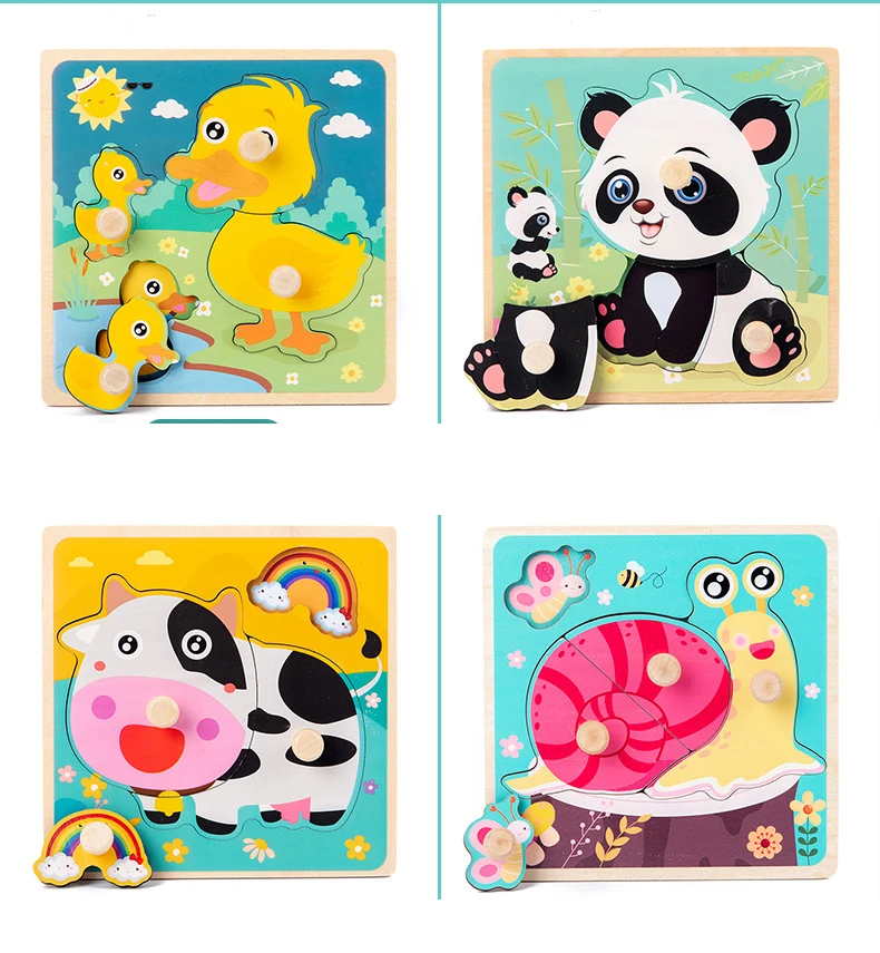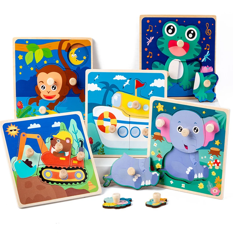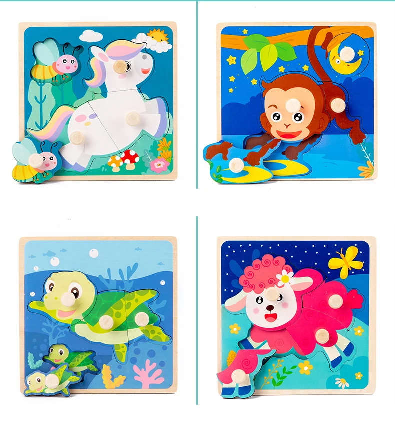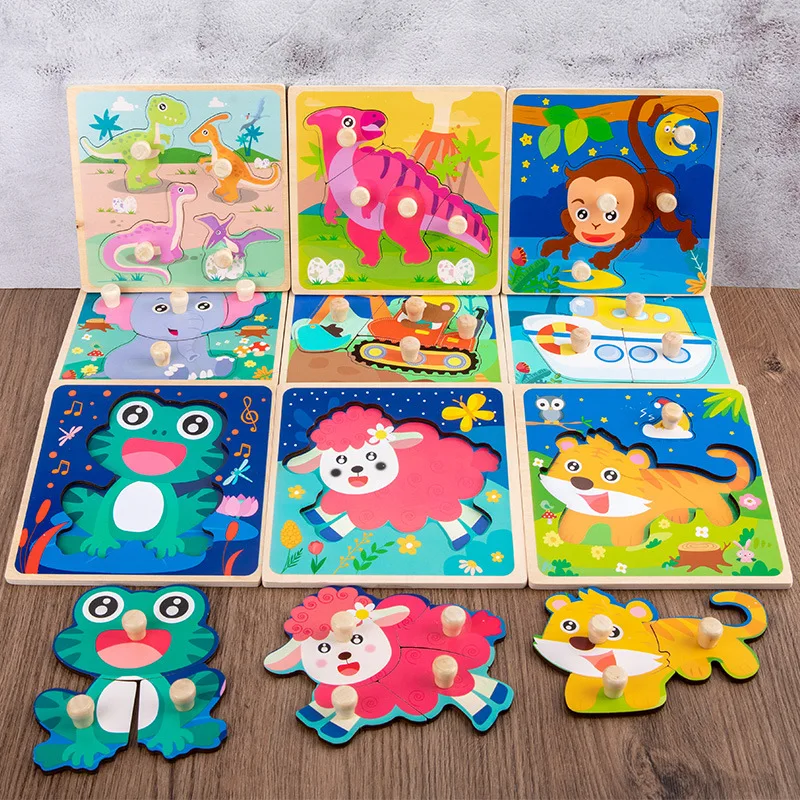 Детская деревянная 3D головоломка, деревянная игрушка для детей, Мультяшные животные, деревянная головоломка для раннего развития, обучающая игрушка