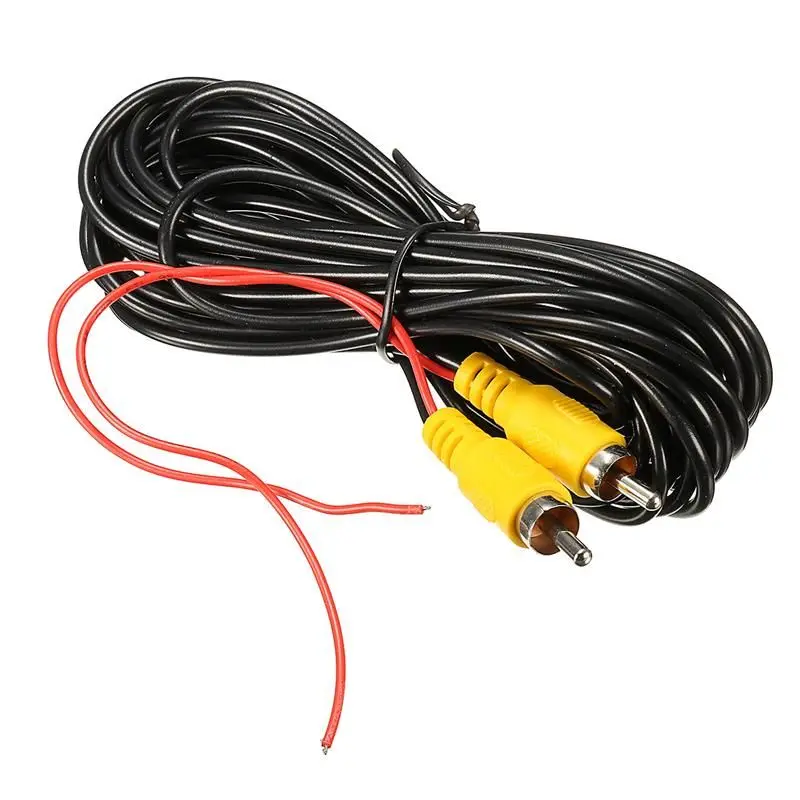 В комплект входит: 6 метров видео провода с внутренним плюсом RCA, кабель питания ~1 метр, инструкция по подключению, гарантия.