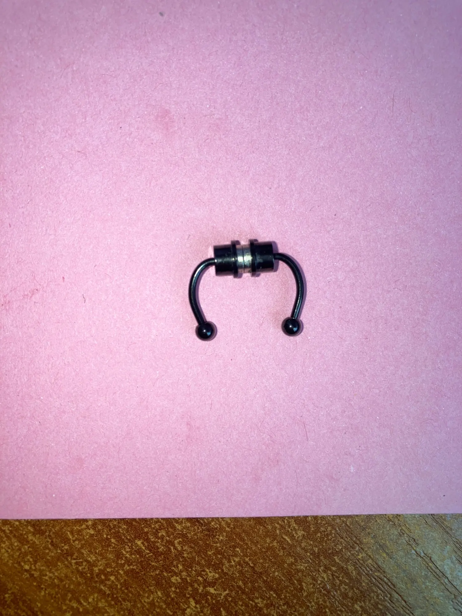 Le piercing est beaucoup trop grand donc il n'y a aucune possibilité de pouvoir le mettre dans que ça paraisse pour un faux. De plus il aurait fallu que le piercing soit plus tire dans l'arrondi (comme le vrai septum), que dans l'ovale ce qui ne fait absolument pas beau et très faux. Sinon les aimants tiennent vraiment bien.
