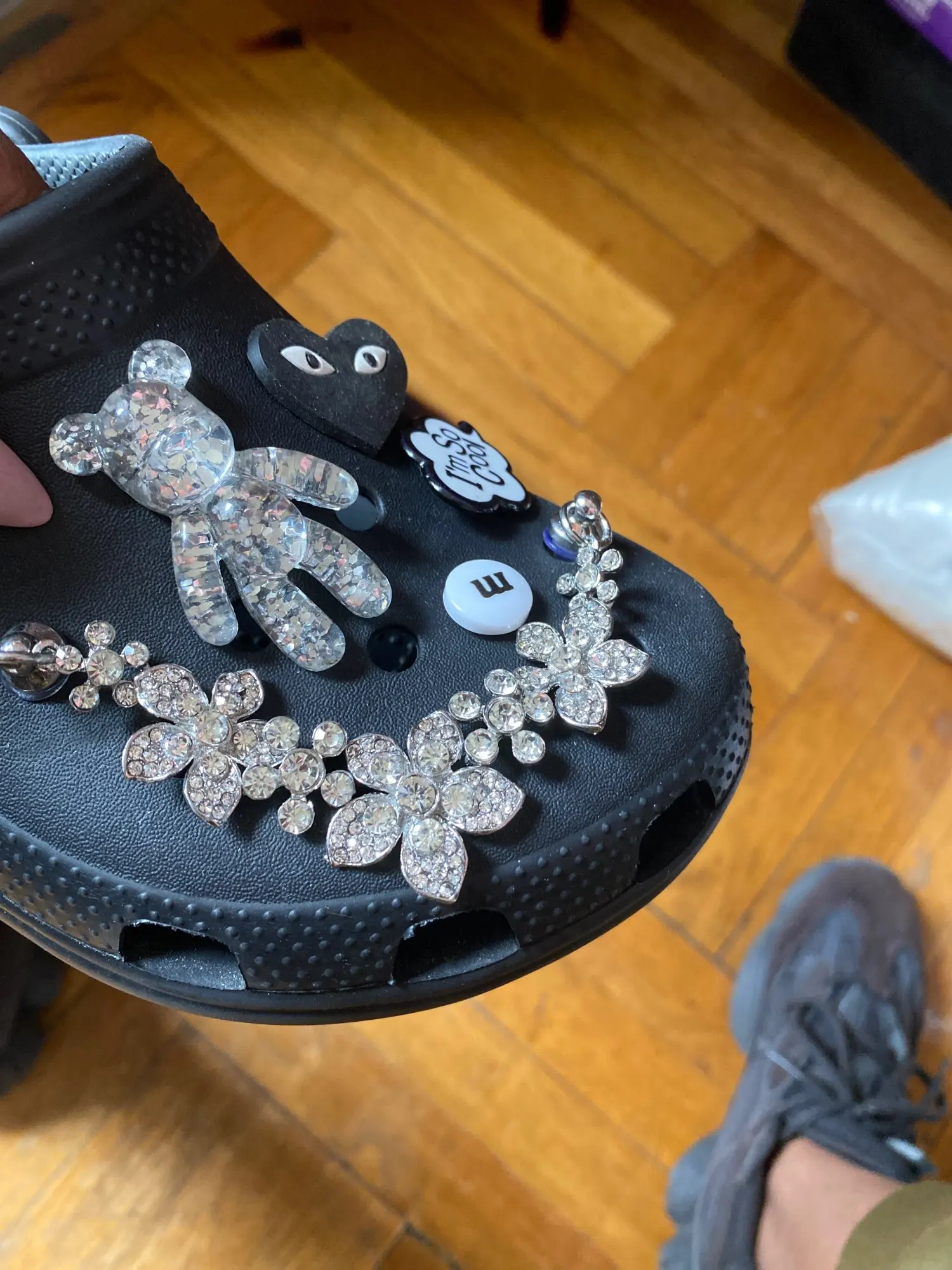 Он был меньше, чем ожидалось, но очень милый. На фотографиях он выглядел бархатно, но irl это пластик. Ведьма не беспокоит меня. Выглядит довольно мило на моих кроксах.