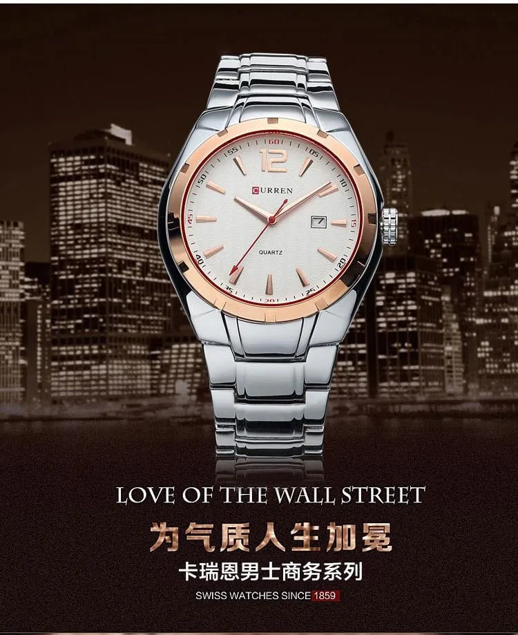 Часы CURREN Мужские наручные кварцевые, роскошные Брендовые спортивные модные повседневные из нержавеющей стали