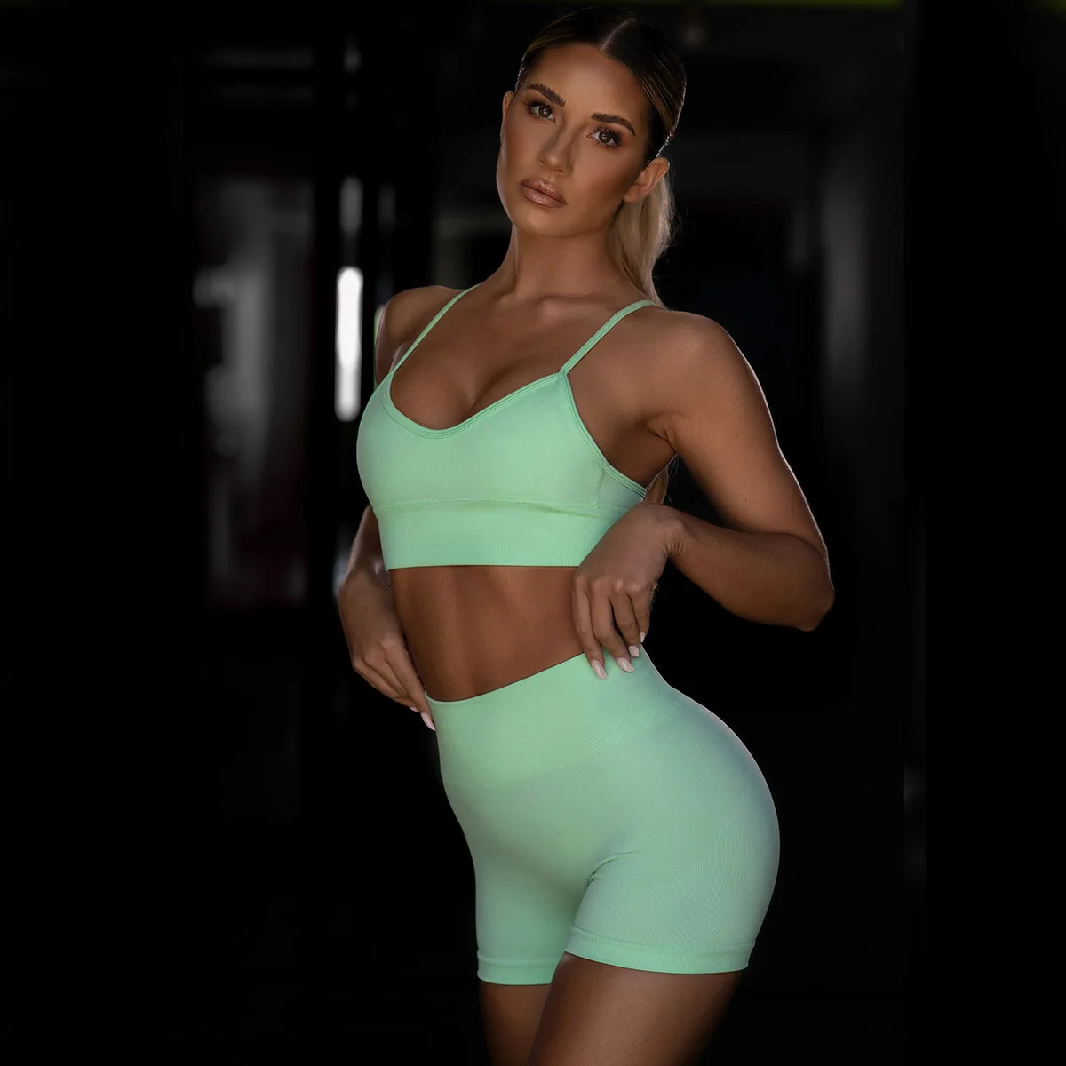 Женский спортивный комплект WOHUADI, бесшовный бюстгальтер, шорты с...
