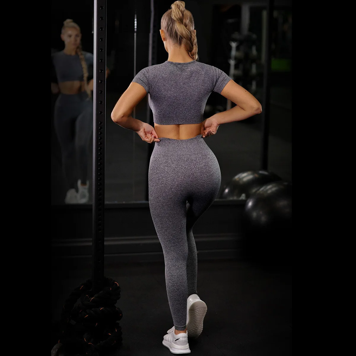 Бесшовный Женский Набор для йоги, футболки для тренировок, спортивные штаны, бюстгальтер, одежда для спортзала, короткий топ с высокой талией, леггинсы для бега, спортивный комплект