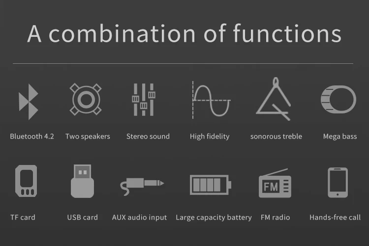 Features 9Stereo sound, 360-degree surround sound quality.