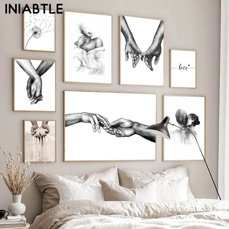 Плакаты рука об руку, черно-белые романтические, на холсте, с надписью любовь