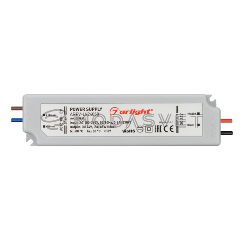 Блок питания ARPV-LV24050 (24V, 2.0A, 48W) ( IP67 Пластик, 2 года)
