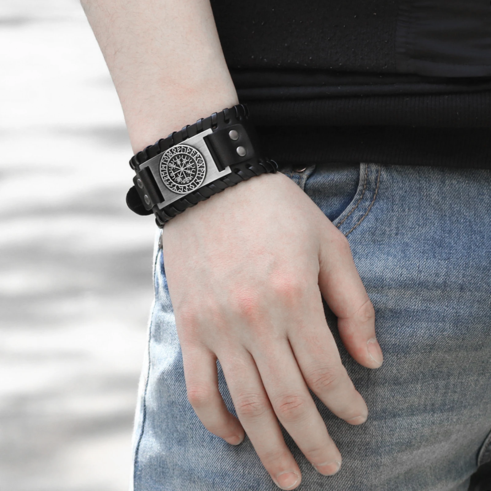 Материал (дополнительно): браслет из искусственной кожи/натуральной кожи и сплава, кожаный браслет со стильным дизайном. Размеры: Ширина: 4 см Длина: 27,5 см = 10,63 дюймов. Браслет может быть отрегулировано от 17,5 до 22,5 см, подходит для большинства запястья. Пожалуйста, не прикасайтесь к воде при ношении браслета. Пожалуйста, снимите браслет из искусственной кожи во время купания или на кухне. Отличный выбор подарков для особых случаев, таких как день рождения, выпускной, годовщина, свадьба, Рождество, Пасха. Этот браслет может использоваться как обязательный элемент для модные и ультрамодные мужские сумки для вечеринок, гитар, модного события, дисплей, и в других случаях
