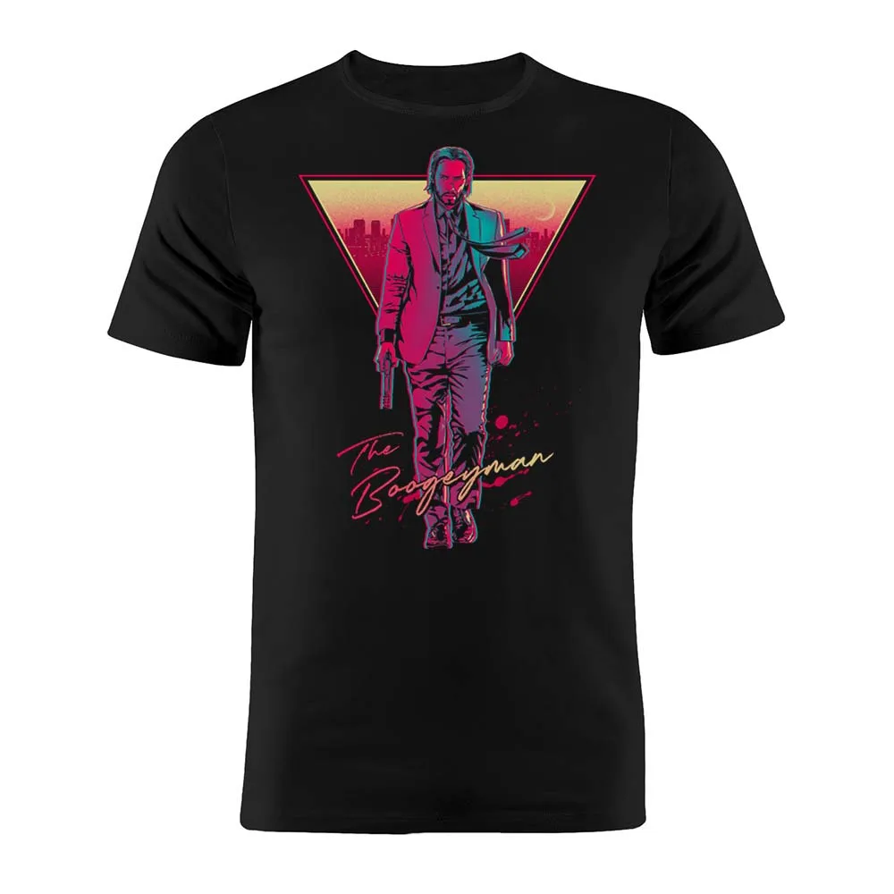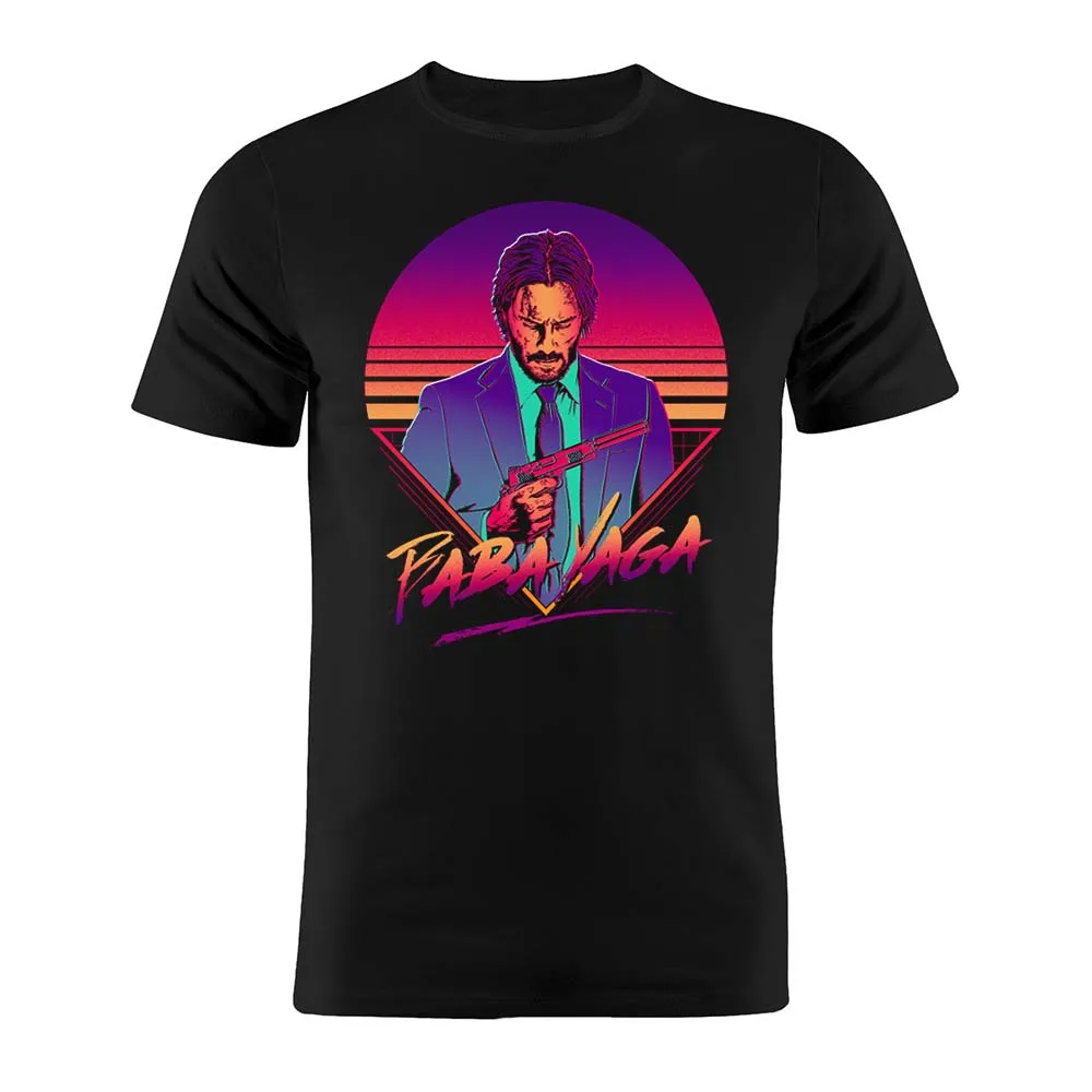 Мужская хлопковая футболка с изображением Джона уика, Synthwave, Черная