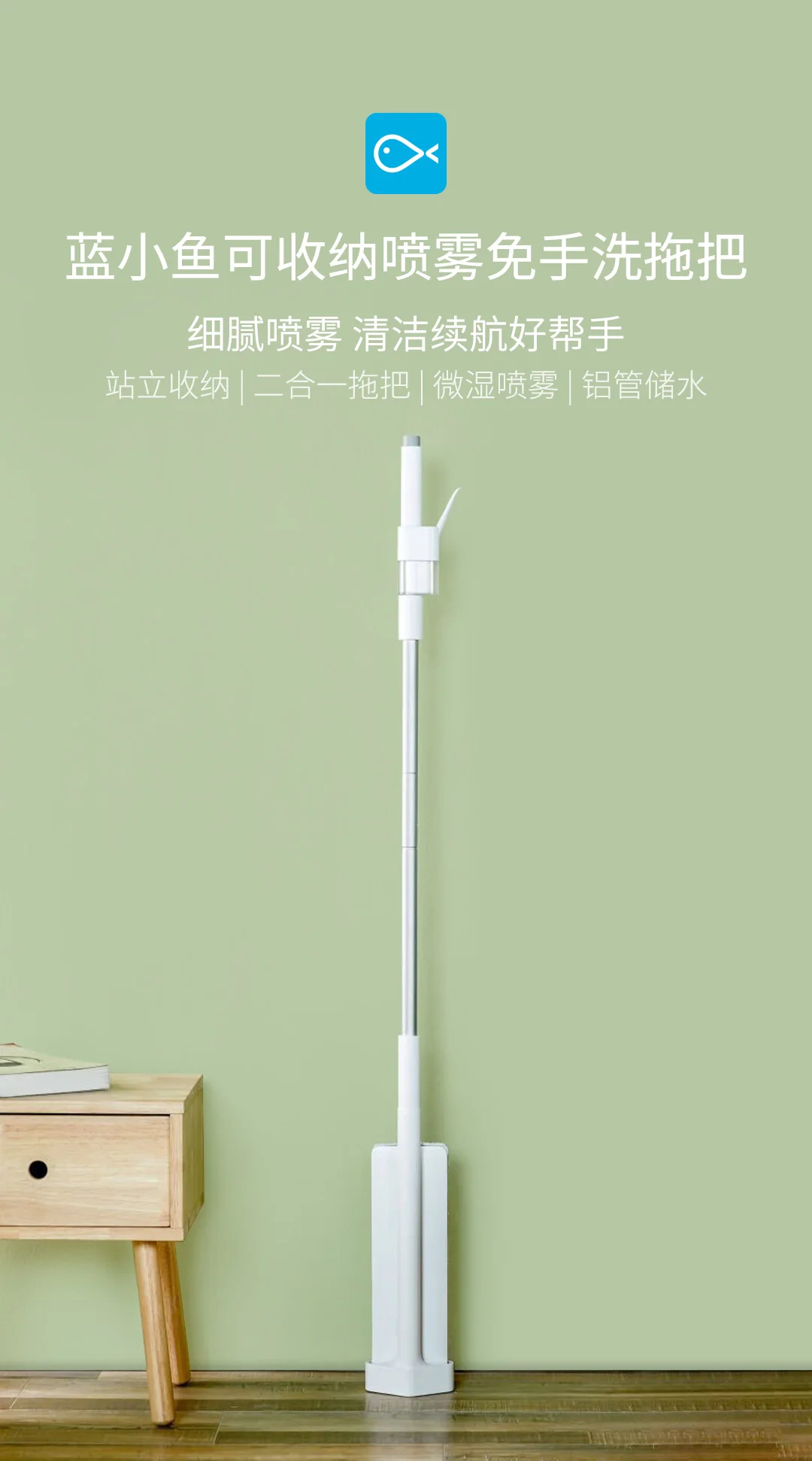 Швабра Youpin с распылителем голубой рыбы, вращающаяся на 360 градусов сменная Насадка для швабры, хранение в вертикальном положении кнопок, нажимной инструмент для очистки