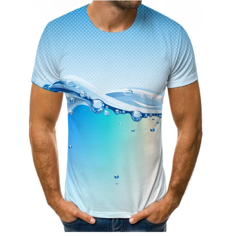 Летняя мода 2021, новинка, Мужская Красивая Повседневная футболка с 3D-принтом капли воды для танцев, футболка с короткими рукавами