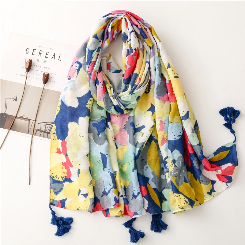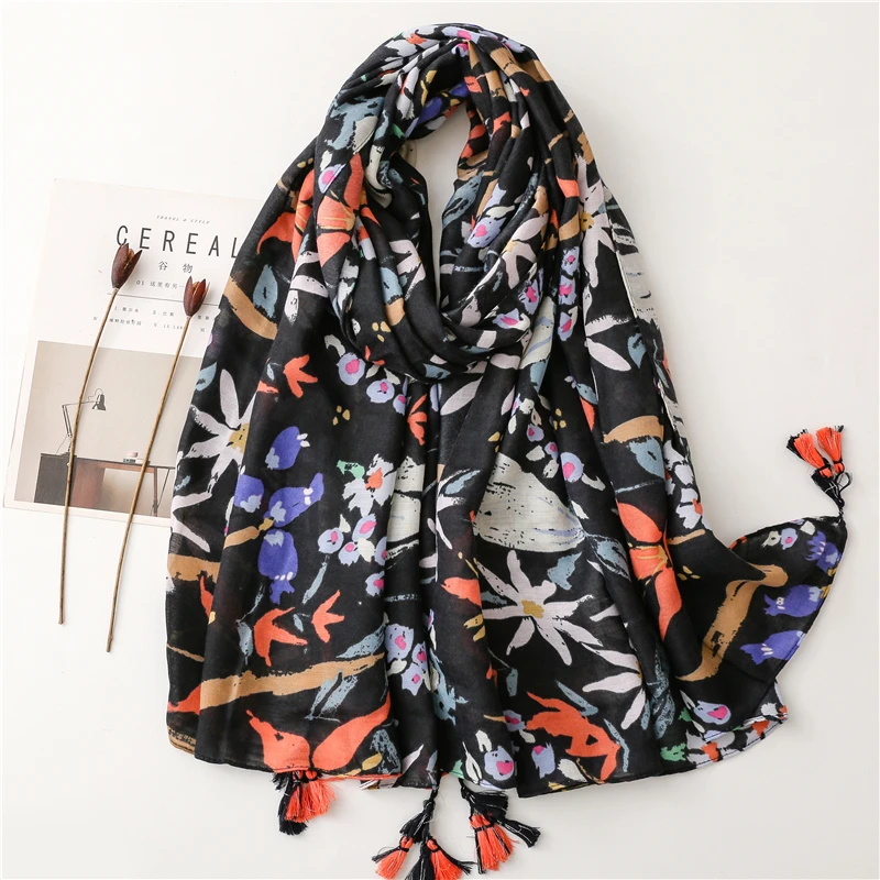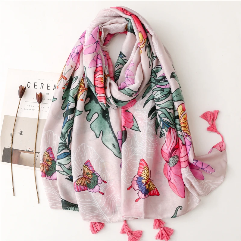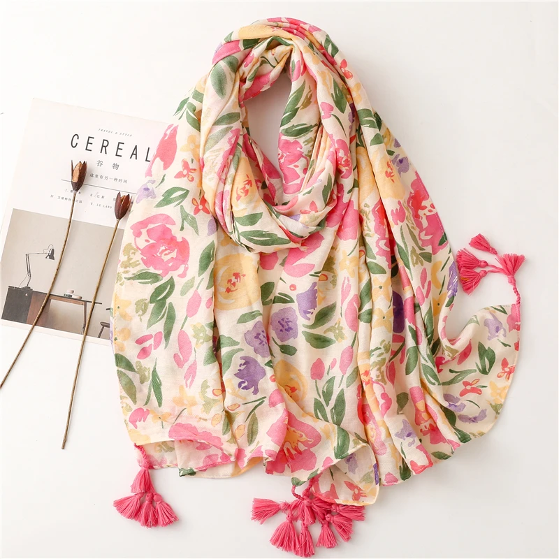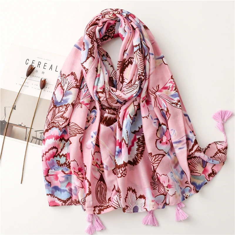 2022 Модный цветочный шарф с кисточками и узором пейсли, шаль из вискозы, женский шарф высокого качества, тонкий пашминовый палантин, мусульманский хиджаб 180*90 см