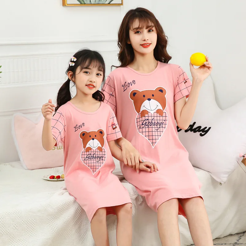 Ночное платье для матери и дочери, летняя семейная Пижама с коротки...