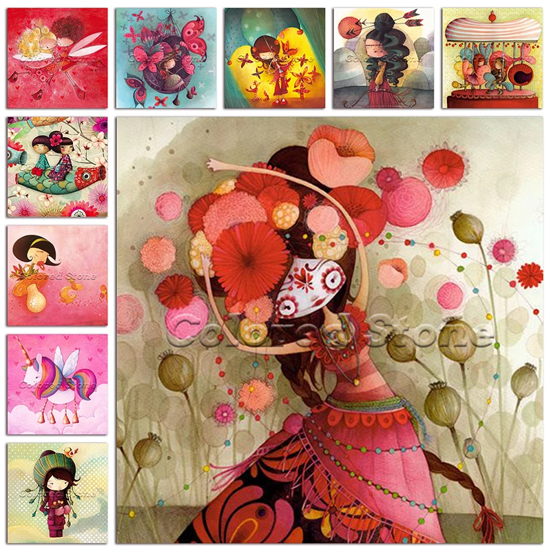 Алмазная живопись, мультяшная девушка, цветок, кот, Гоблин 5D, сдел...