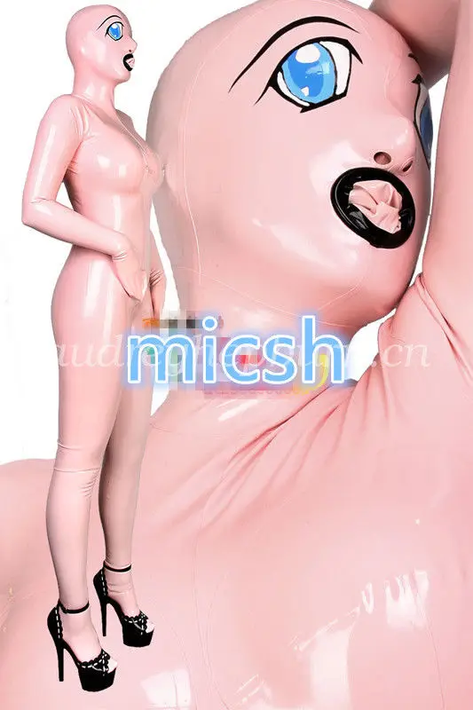 100% латексное резиновое боди, облегающий костюм кошки Ganzanzug, розовый костюм 0,4 мм