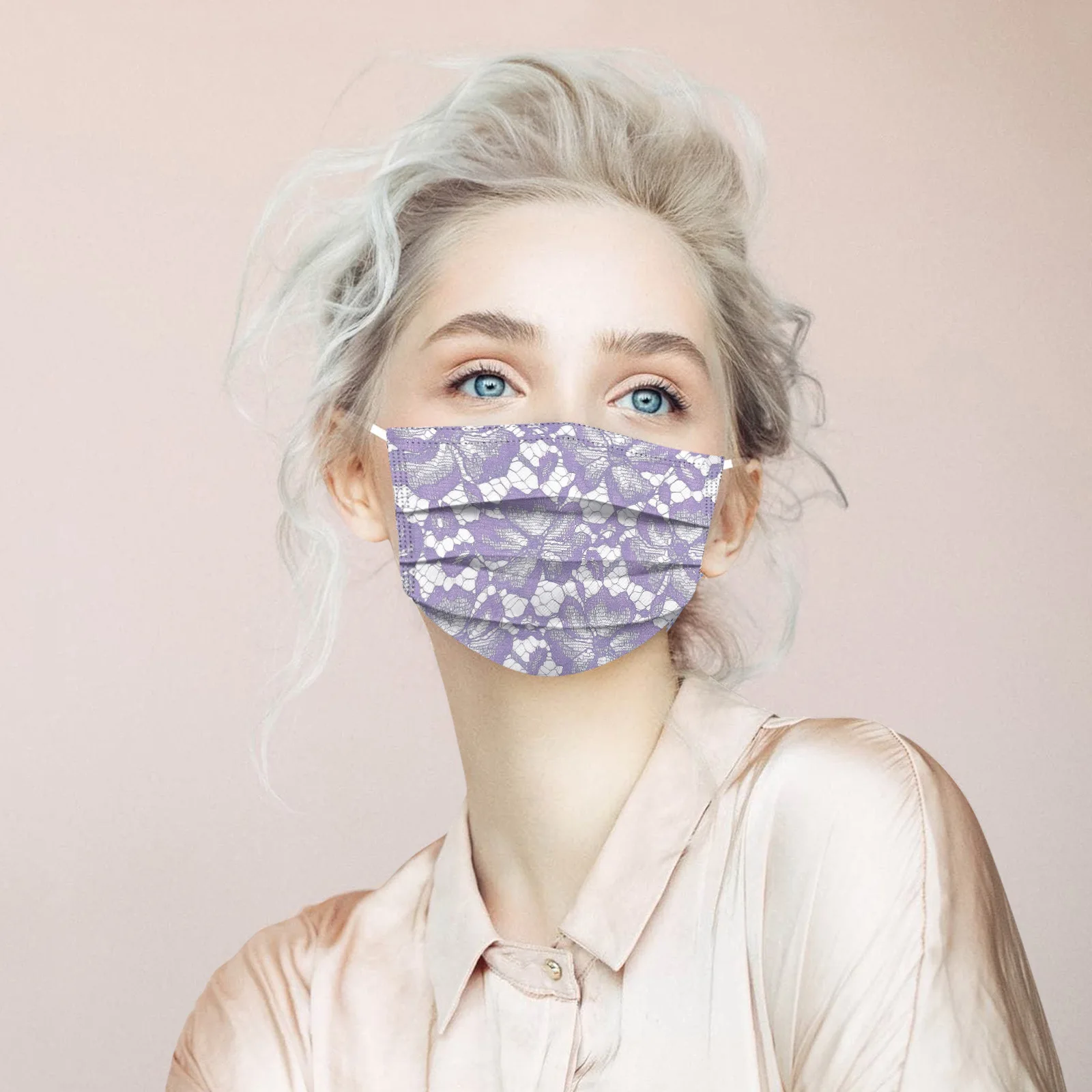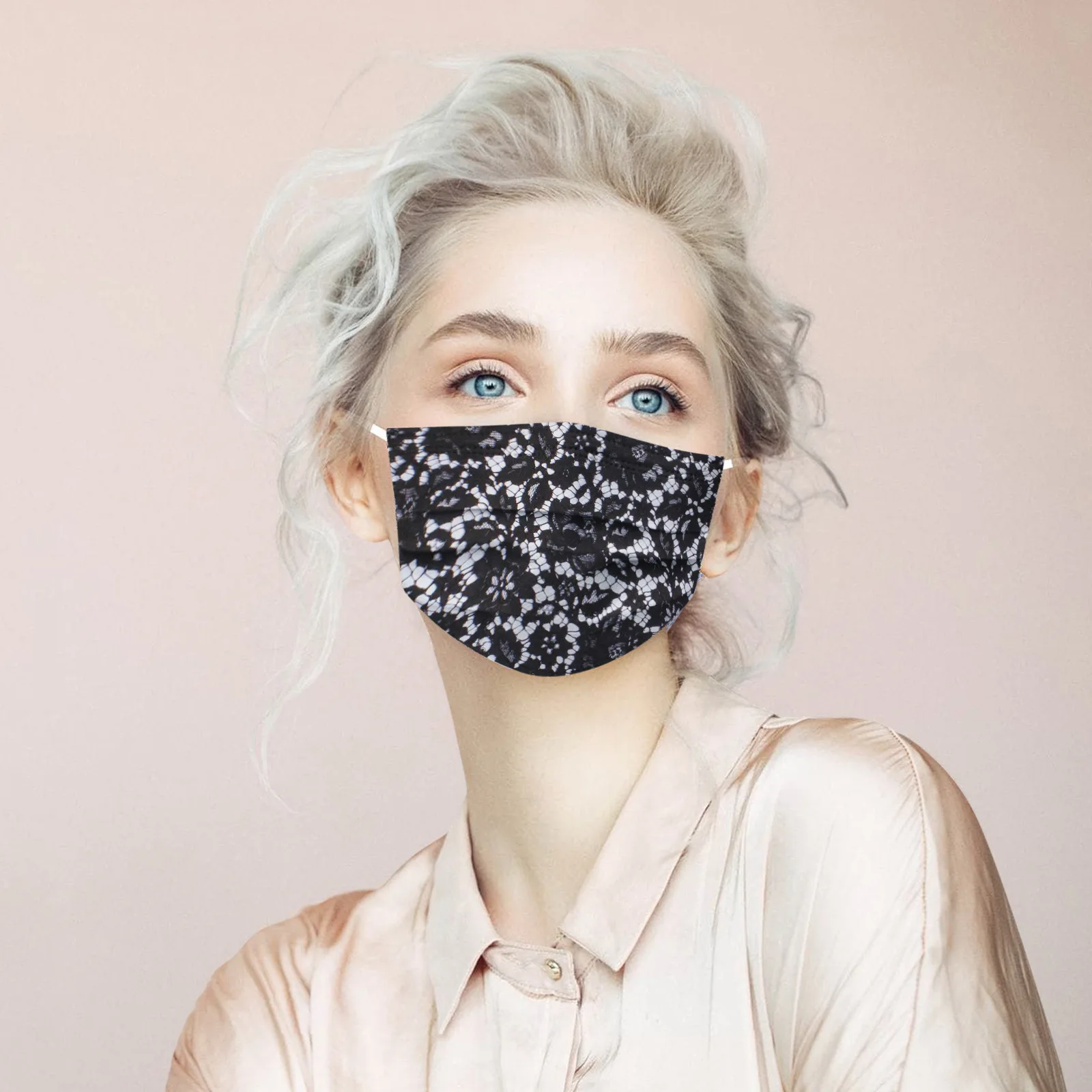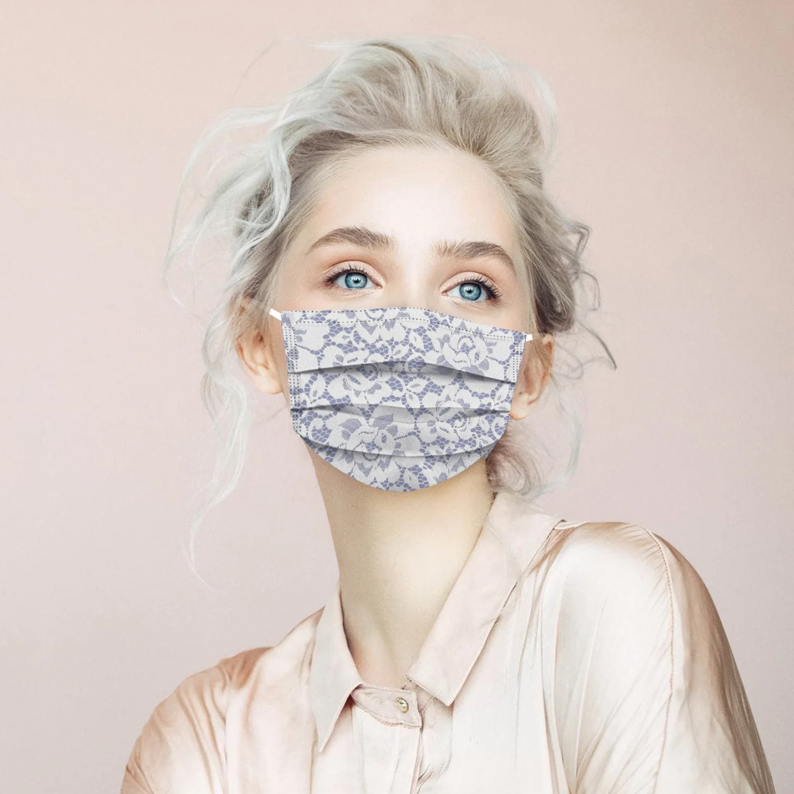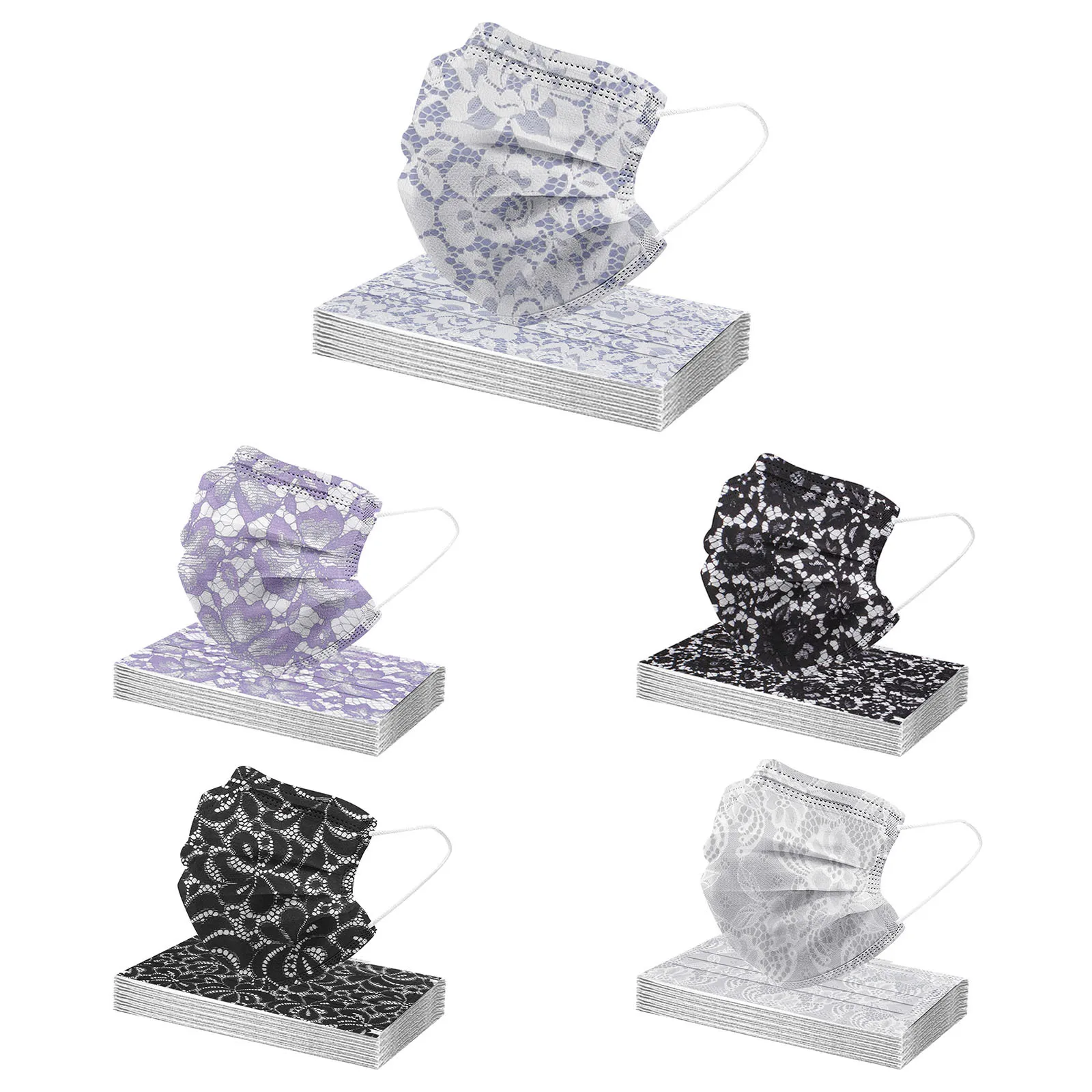 Маска кружевная одноразовая для лица, элегантная 3-слойная защитная маска из нетканого материала, 50 шт.