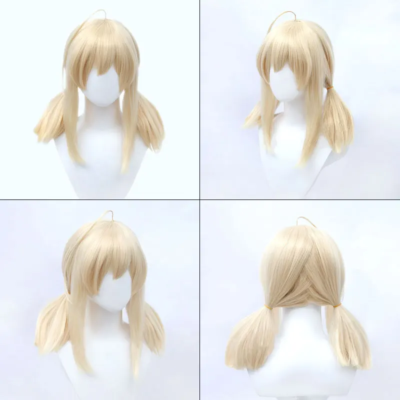 Синтетический короткий парик с челкой Klee Cosplay Genshin ударопрочный двойной парик для конского хвоста для женщин для вечерние светлые волосы удлинение