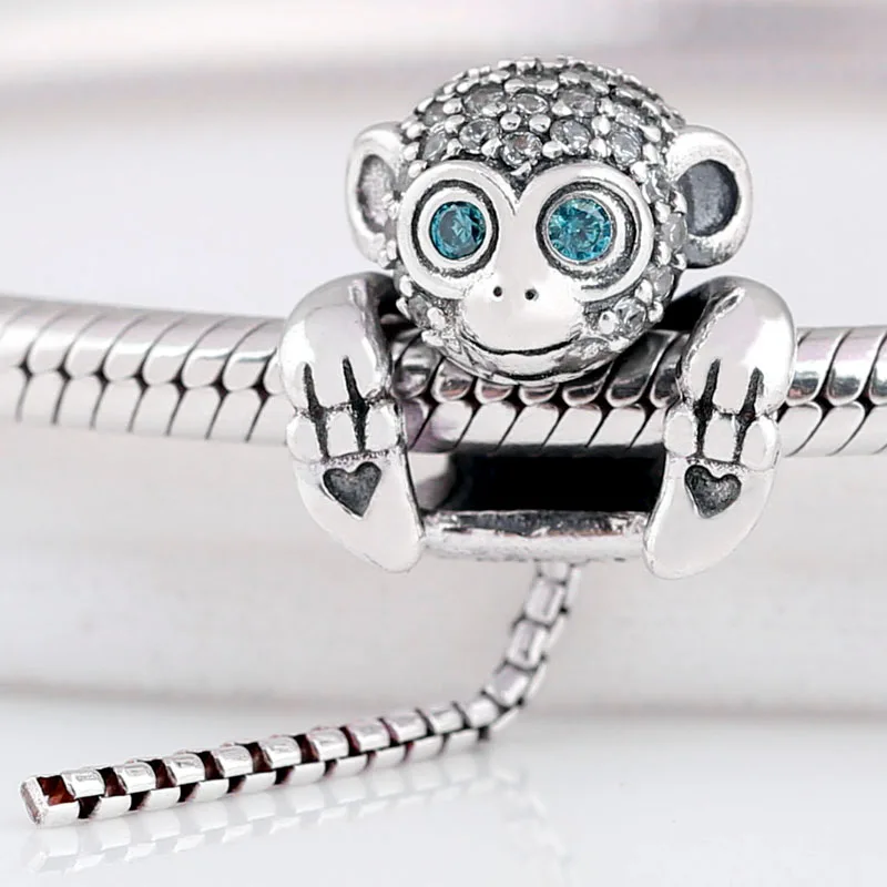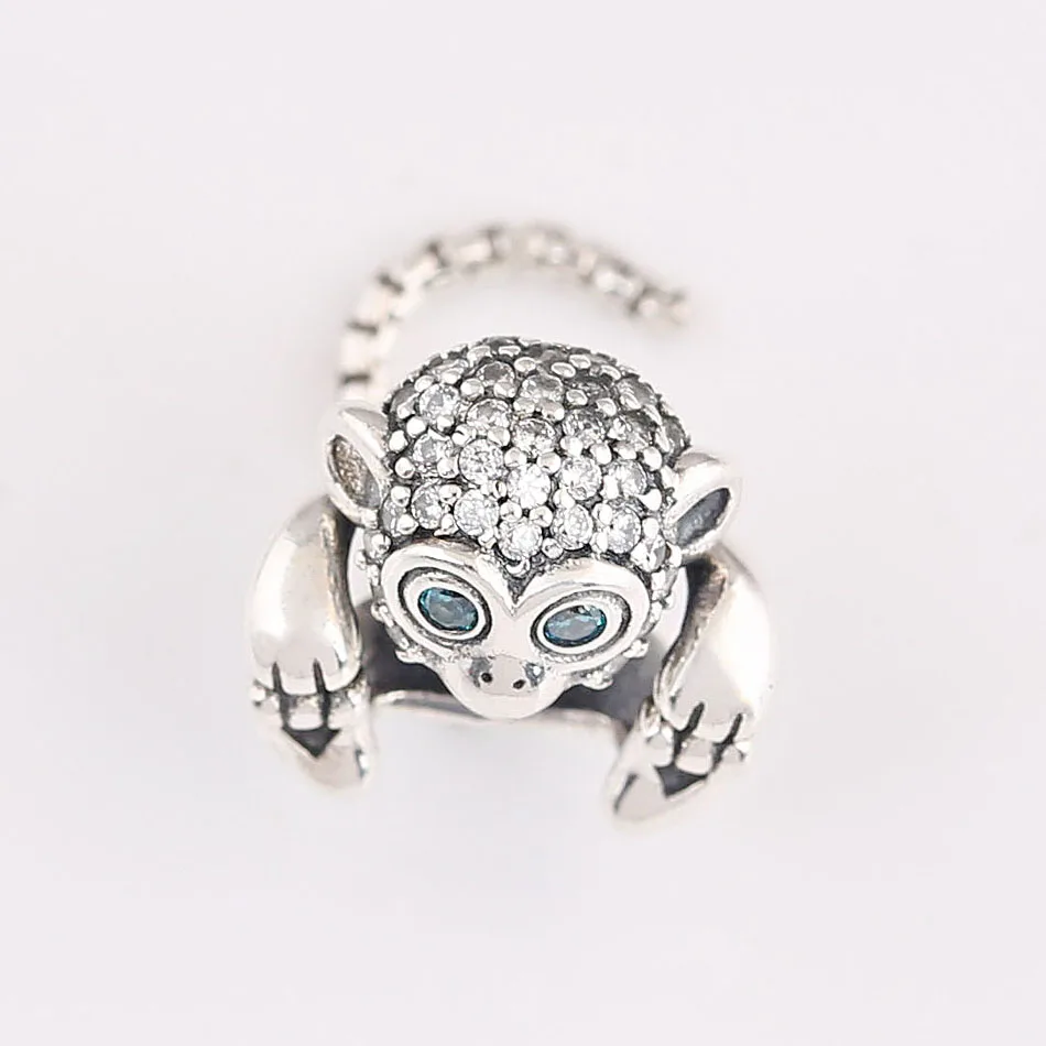Оригинальная длинная змеиная цепочка с хвостом, блестящая обезьянка с хрустальными бусинами, подходит для серебра 925 пробы, подвеска, ювелирные изделия для рукоделия