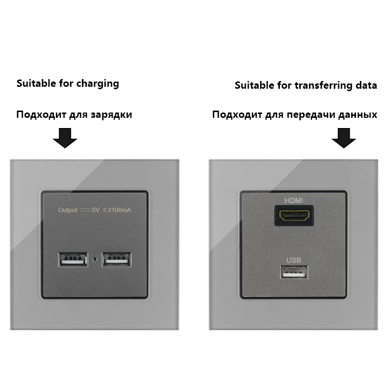 USB для передачи данных HD-порт передачи данных ЕСФранцузский разъем питания с двумя USB-портами s Mobile Серебристая кристальная стеклянная панель