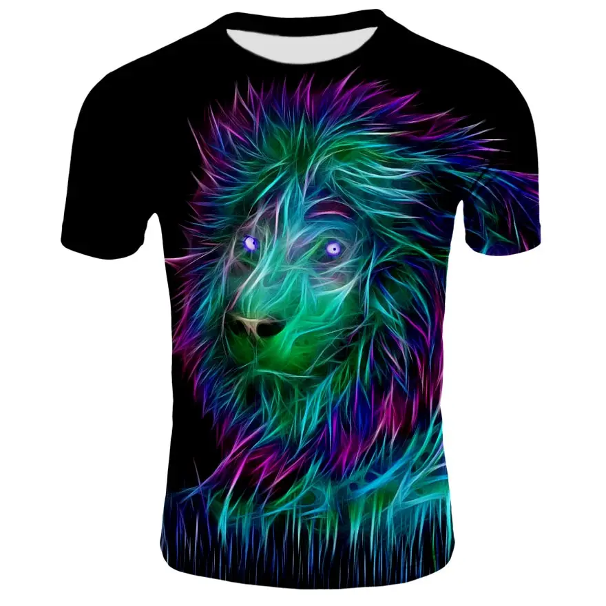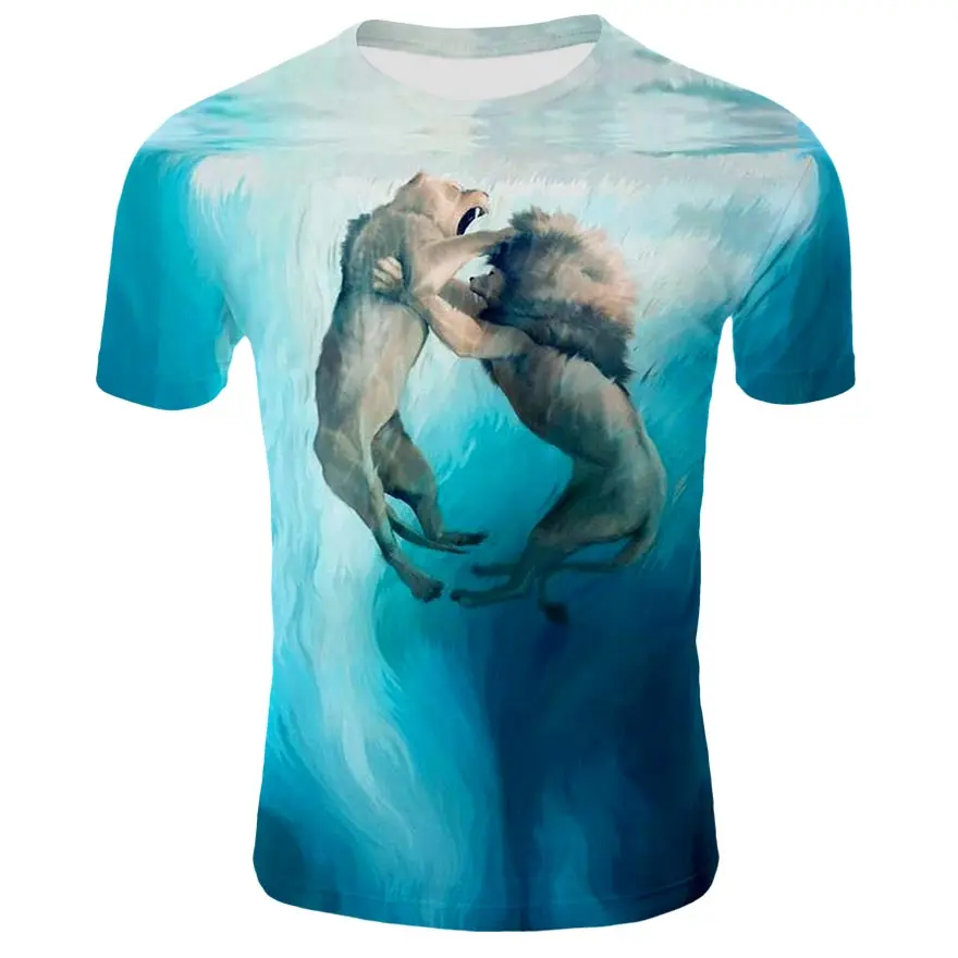 Новинка лета 2021, Мужская модная футболка с 3D принтом льва, футбо...
