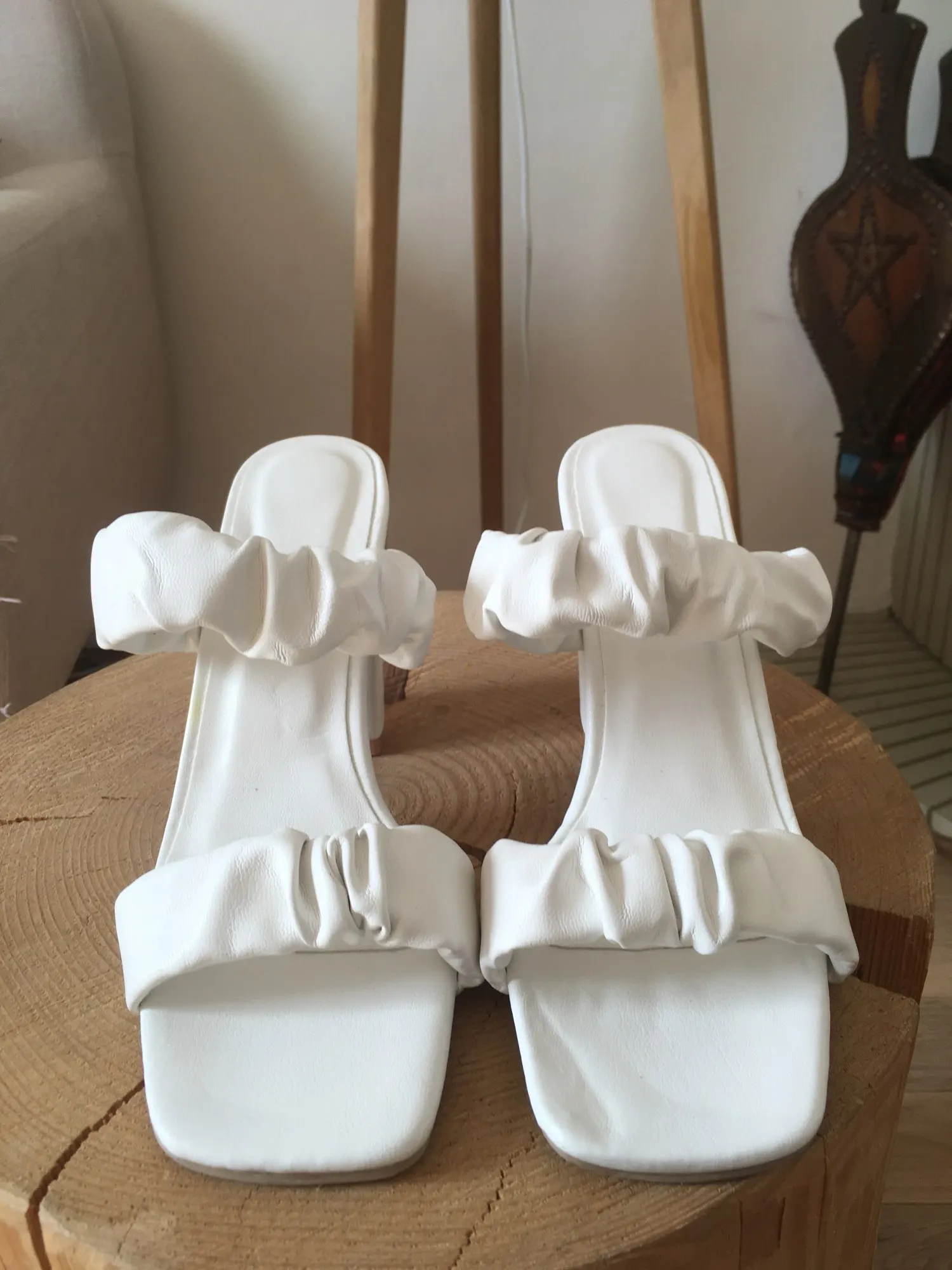 Очень красиво, я делаю Размер 39/391/2, и они подходят по размеру, каблук не слишком большой, цвет очень белый, кудри немного деформированы, но это не очень заметно. Они прибыли очень быстро. Я очень рекомендую это
