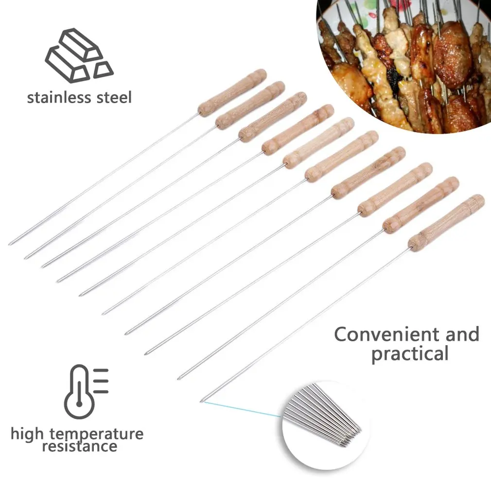 10 шт. Нержавеющаясталь шампур для барбекю с деревянной ручкой многоразовые Пикник барбекю на открытом воздухе Пособия по кулинарии инструмент Кухня аксессуары