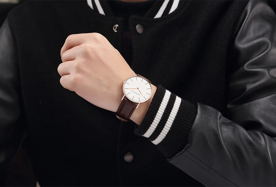 Мужские и женские кварцевые наручные часы с кожаным ремешком