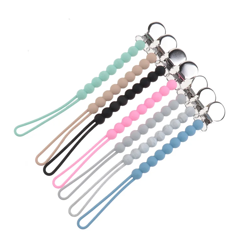 10 шт. силиконовых кейсов детская пустышка на цепочке с прищепкой цепи круглые бусины держатель для соски BPA бесплатные силиконовые пустышки для тренировки жевания поводки для собак детские игрушки Прорезыватель