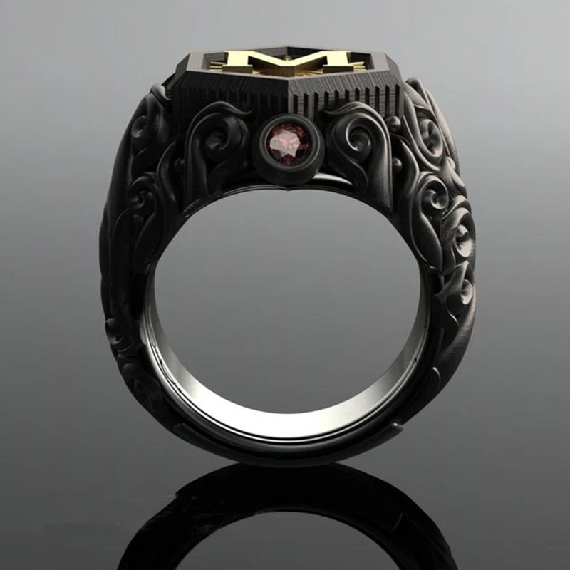 Классические модные богемные черные кольца с буквами M из нержавеющ...