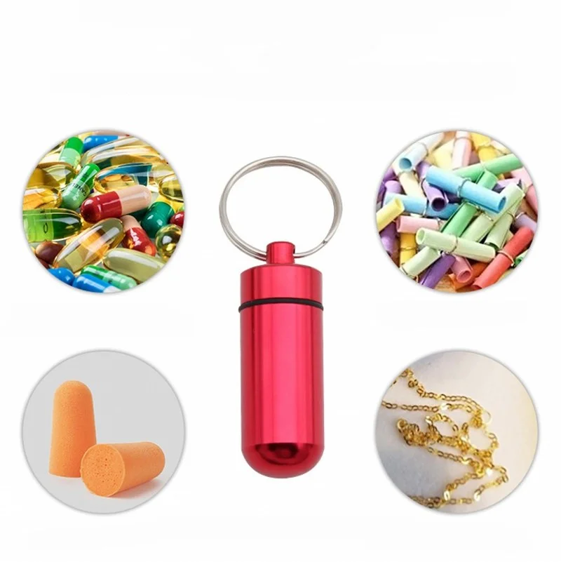 Портативный лекарственный флакон Водонепроницаемый алюминиевый сплав Таблетки Коробка Чехол Кэш наркотиков держатель брелок контейнер медицина, сумка для переноски, на открытом воздухе