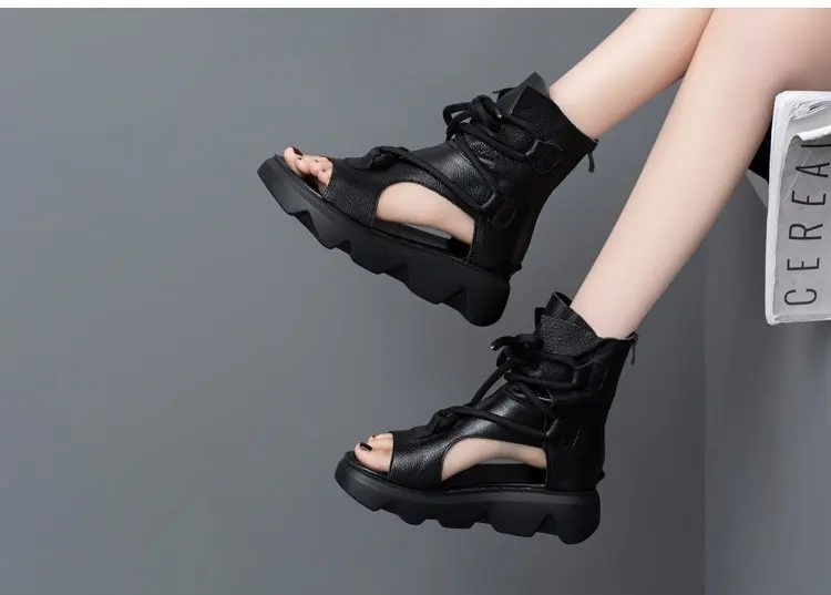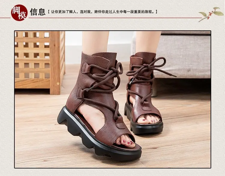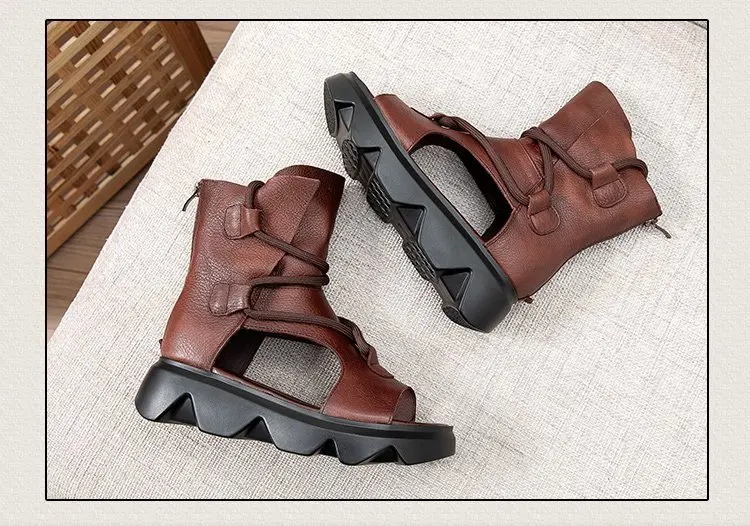 Сандалии женские из мягкой кожи, толстая подошва, рифленые туфли, римские высокие босоножки, Национальный Стиль, лето
