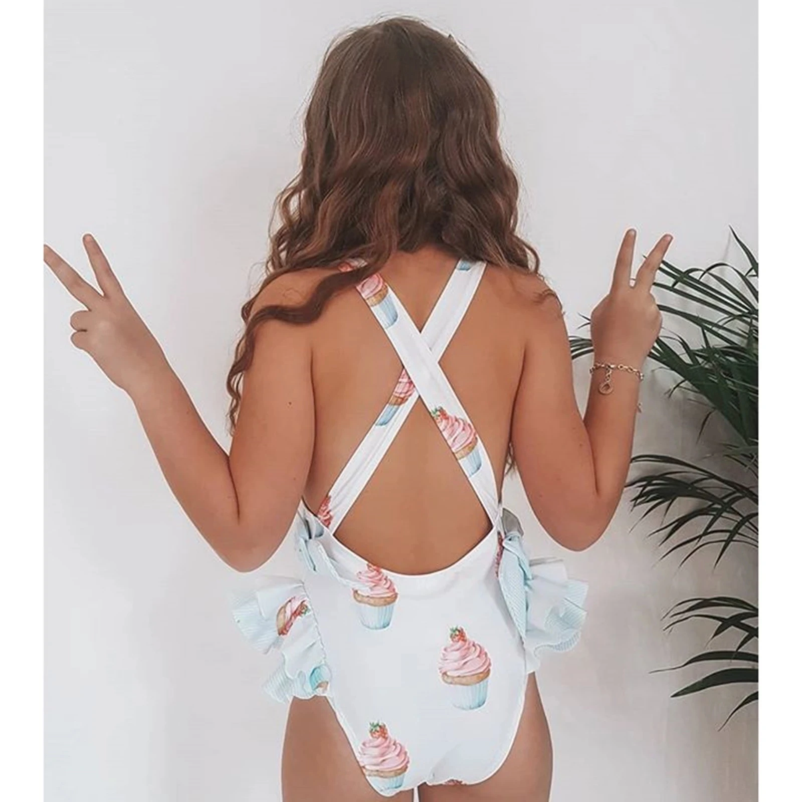 Милый односекционный купальник для маленьких девочек с принтом торт...