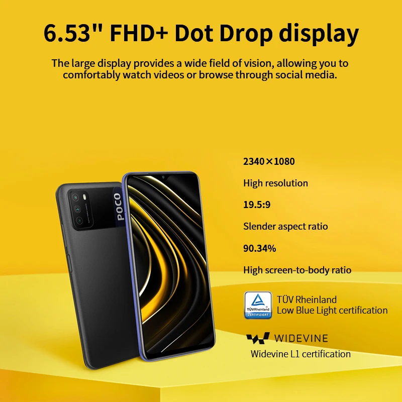POCO M3 глобальная версия 4 Гб + 128 Гб Смартфон Xiaomi Snapdragon 662 Восьмиядерный 6,53 "FHD + дисплей с 48MP AI тройной камерой 6000 мАч