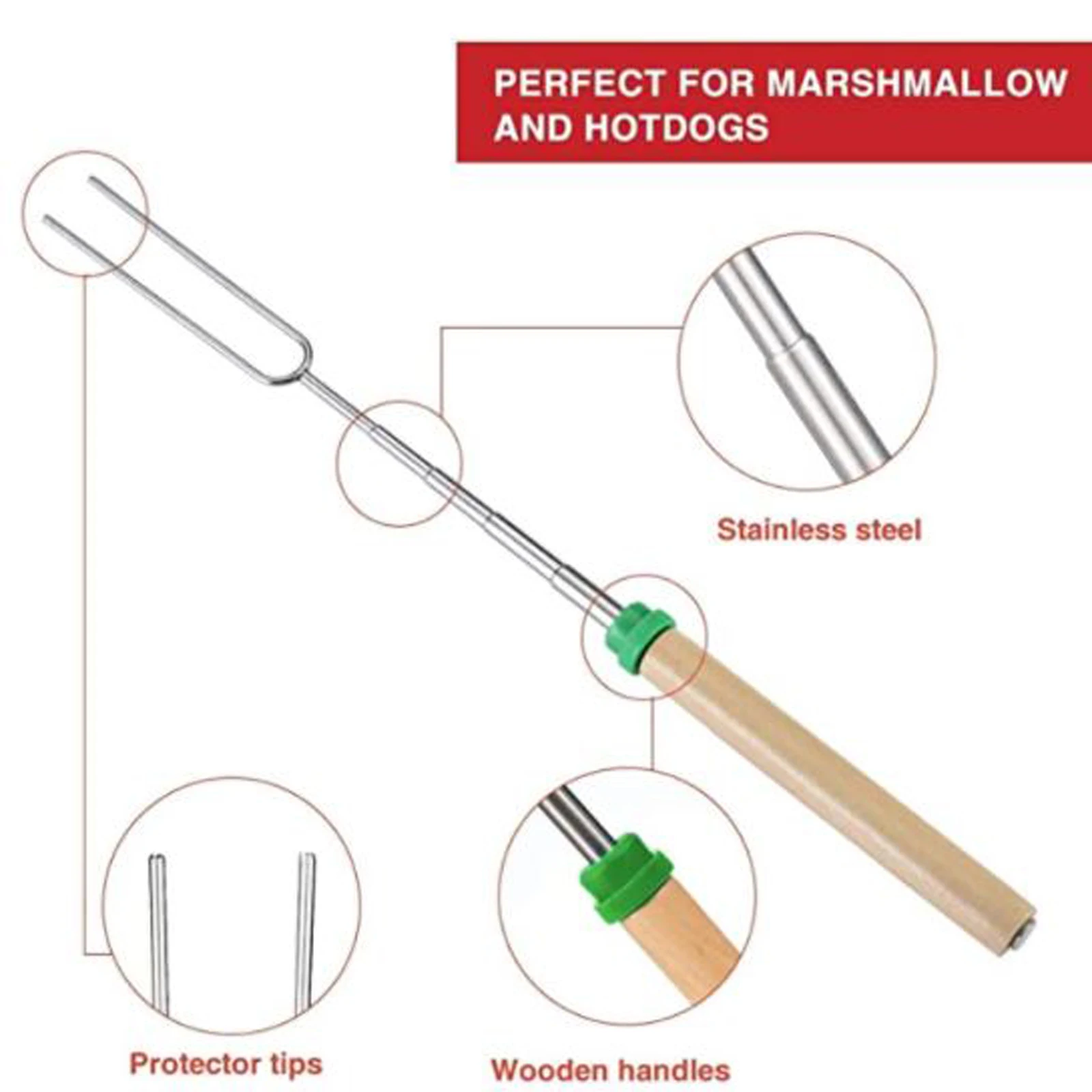 2. Расширяемая штанга для барбекю имеет расширенную U-образную двойную вилку, которая достаточно прочна, чтобы поддерживать сосиски, хот-доги, овощи и зефир.