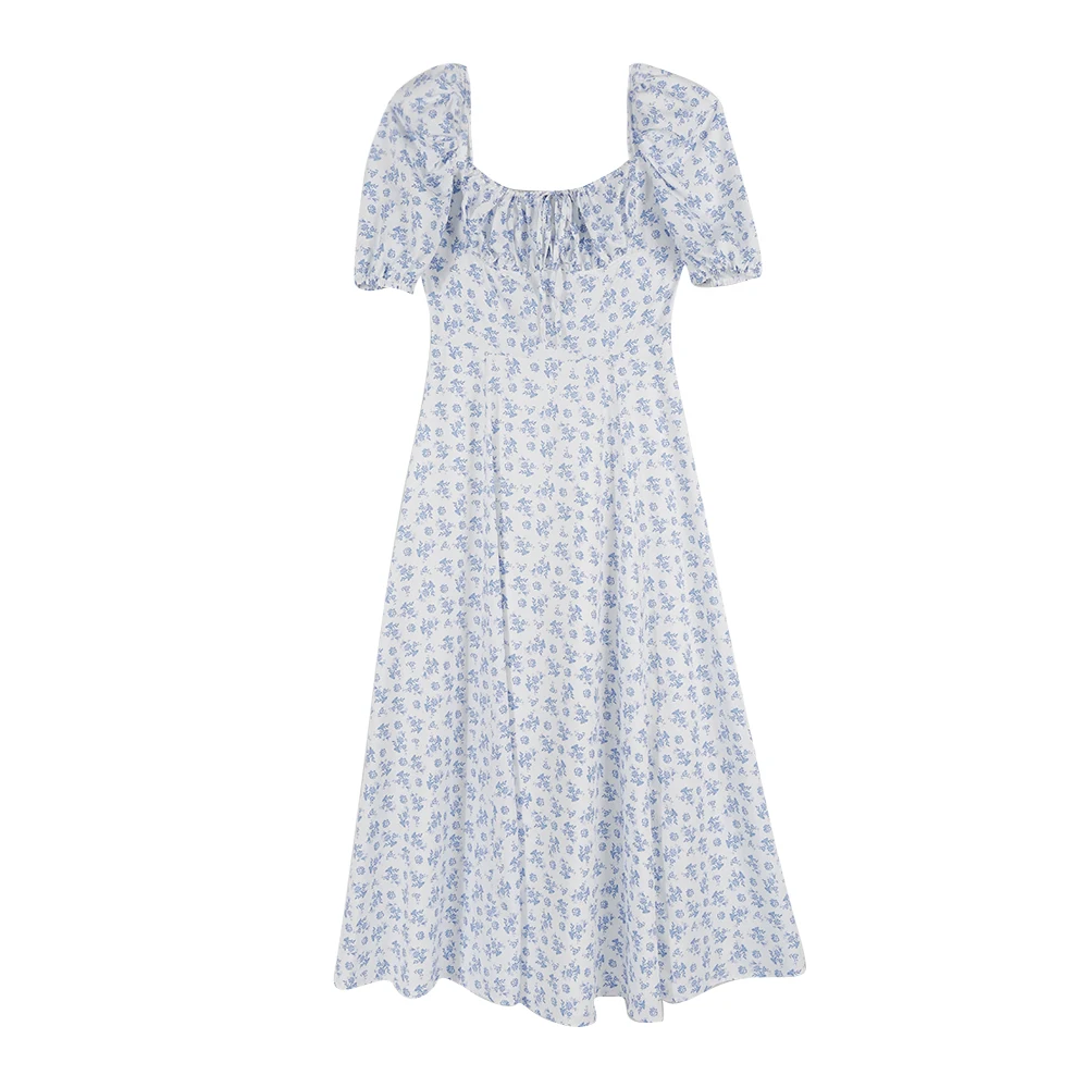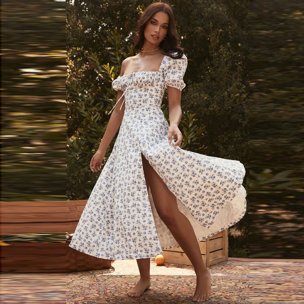 Платье женское длинное на шнуровке, пикантный вечерний облегающий сарафан с цветочным принтом вечерние с пышными рукавами, Бандажное винтажное, весна-лето