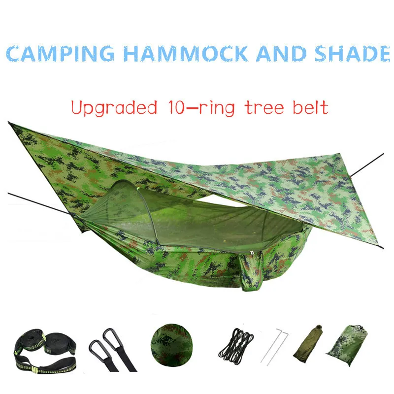 Выдвижной Портативный парашют, гамак для кемпинга на открытом воздухе, с москитной сеткой и солнцезащитным укрытием, Модернизированная подвесная койка с 10 ремешками для деревьев, качели