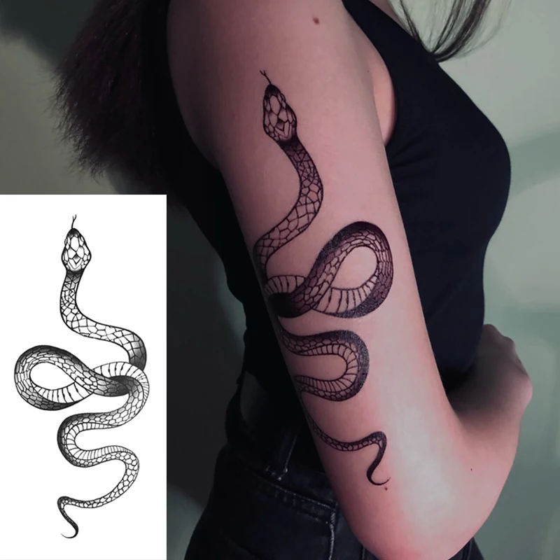 Сексуальная черная змея Временная тату-наклейка для женщин и мужчин...