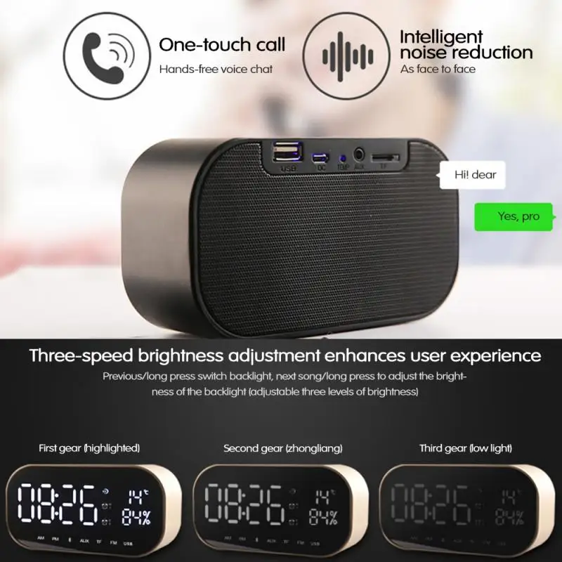 Является ли bluetooth-динамик также будильником, также может использоваться как зеркало и температура дисплея