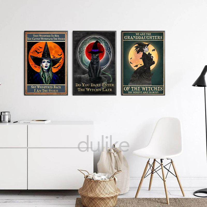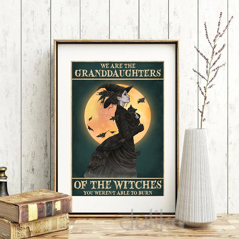 Ведьмы с красивой девушкой с изображением черного кота, Винтаж Плакаты печать девушки вдохновляющие картина с цитатой Witchery женщина стены фотографии