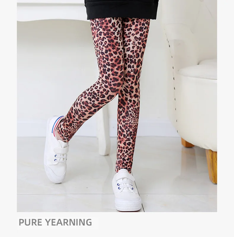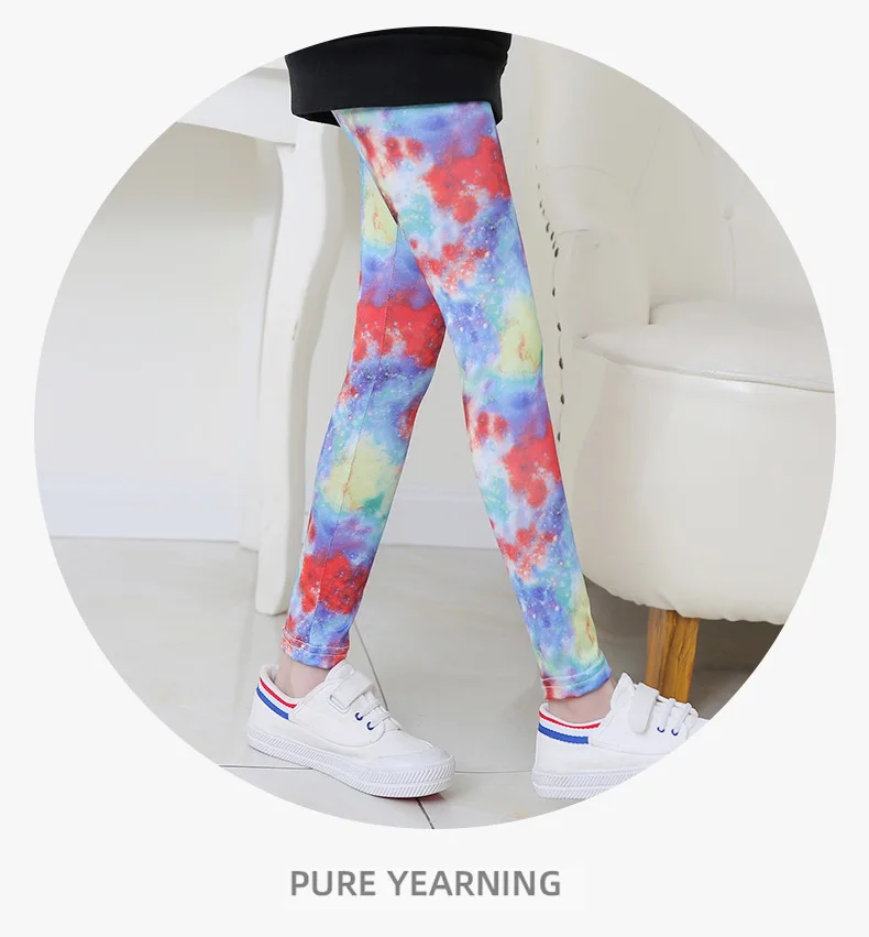 Новый продукт; Сезон весна-осень; Тонкие девочки шелковые Легинсы молочного цвета стрейч брюки с принтом средних и больших размеров, детские штаны