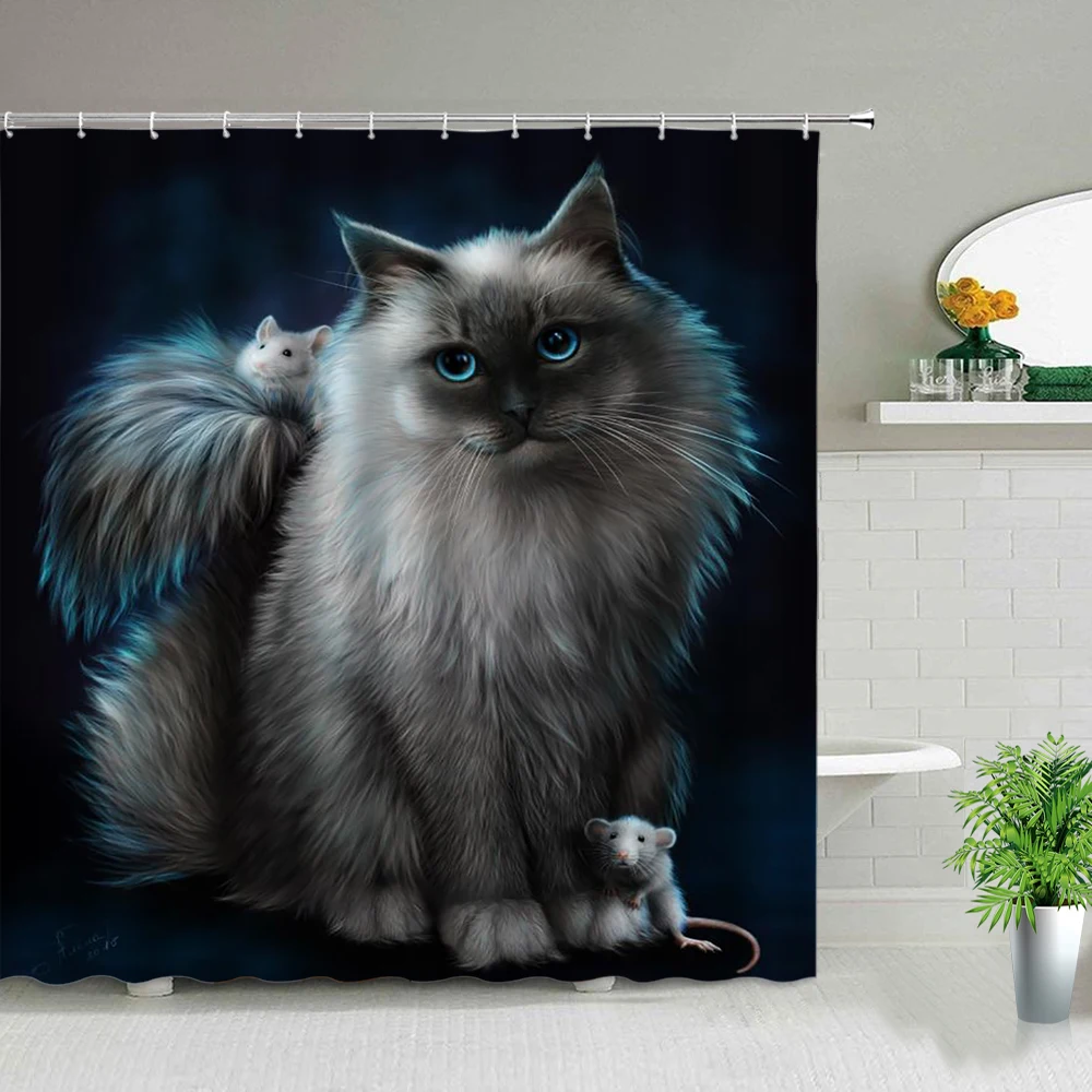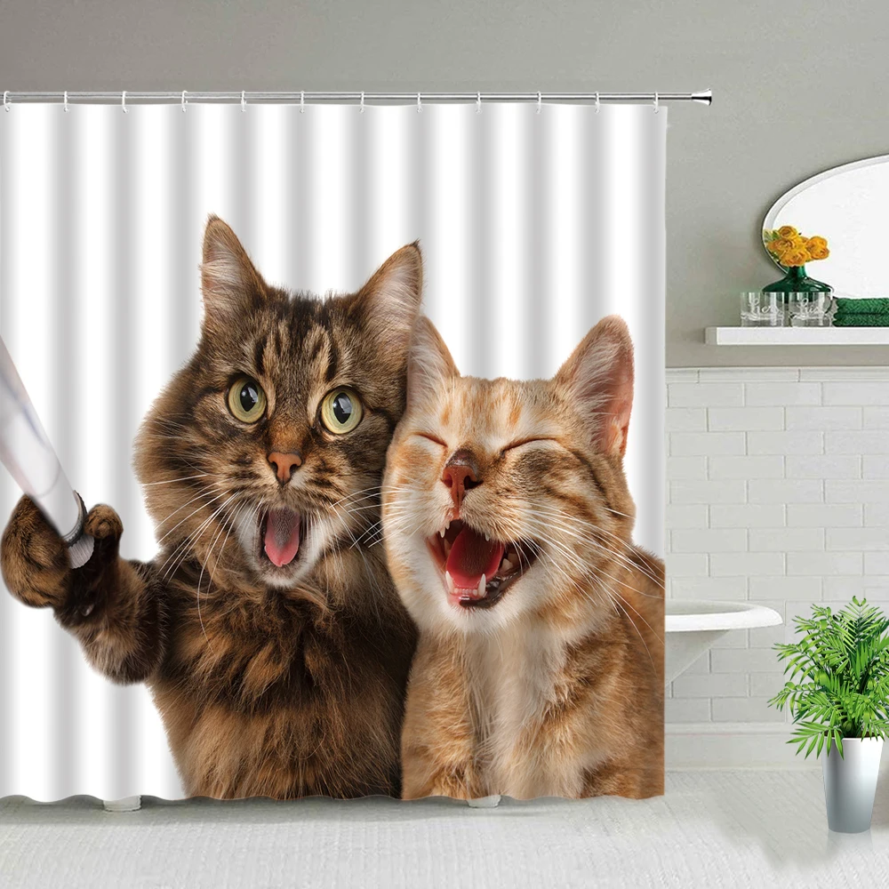 Забавные занавески для душа с изображением животных, кошек, собак, ...